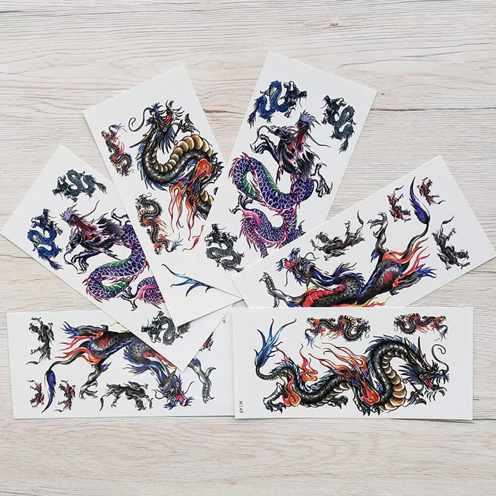 Yesallwas タトゥーシール 龍 竜 飛竜 6枚セット 入れ墨シール リアル 和柄 和彫り タトゥーステッカー ボディーシール 刺青シール 防水 メンズ (F.6枚セット(9×19cm))