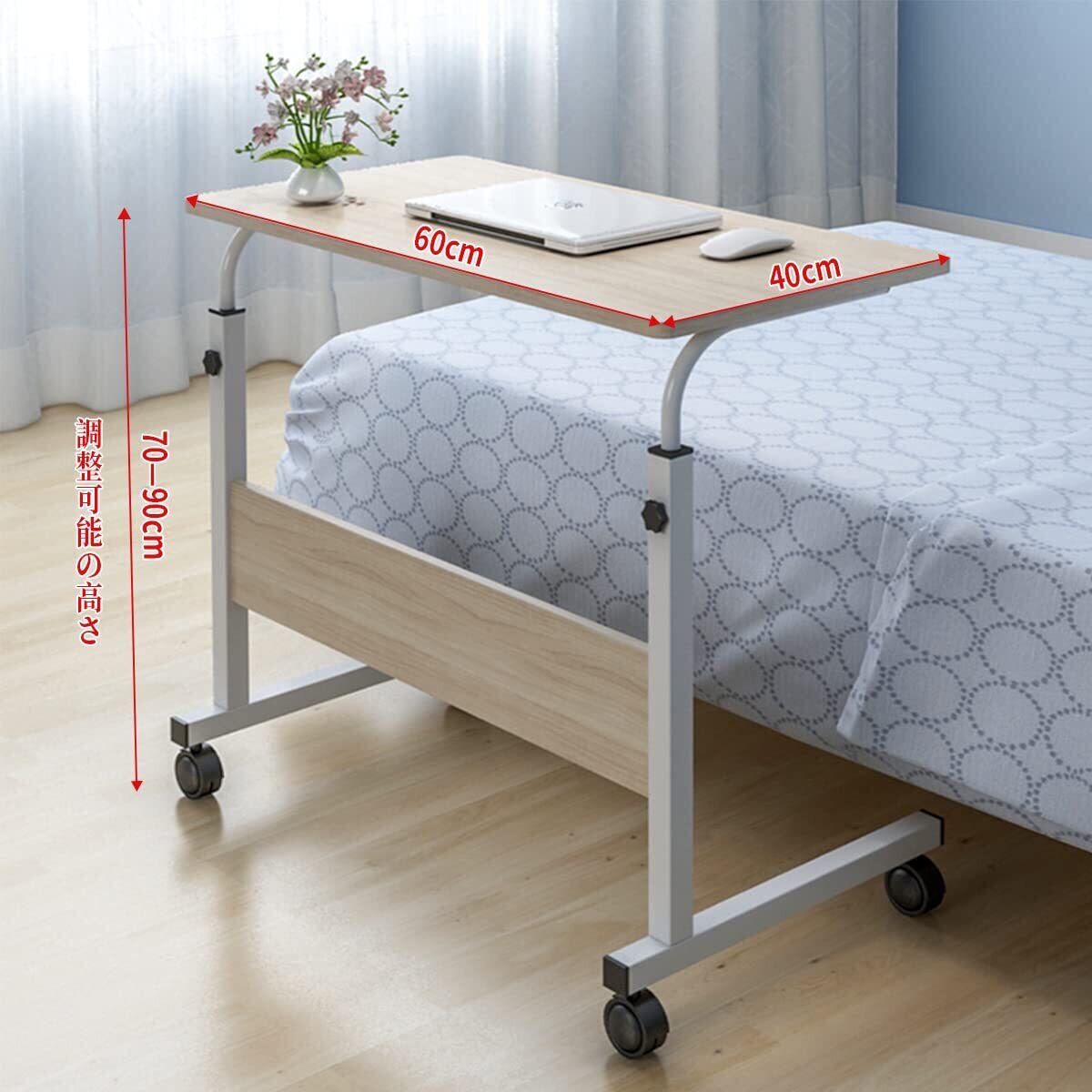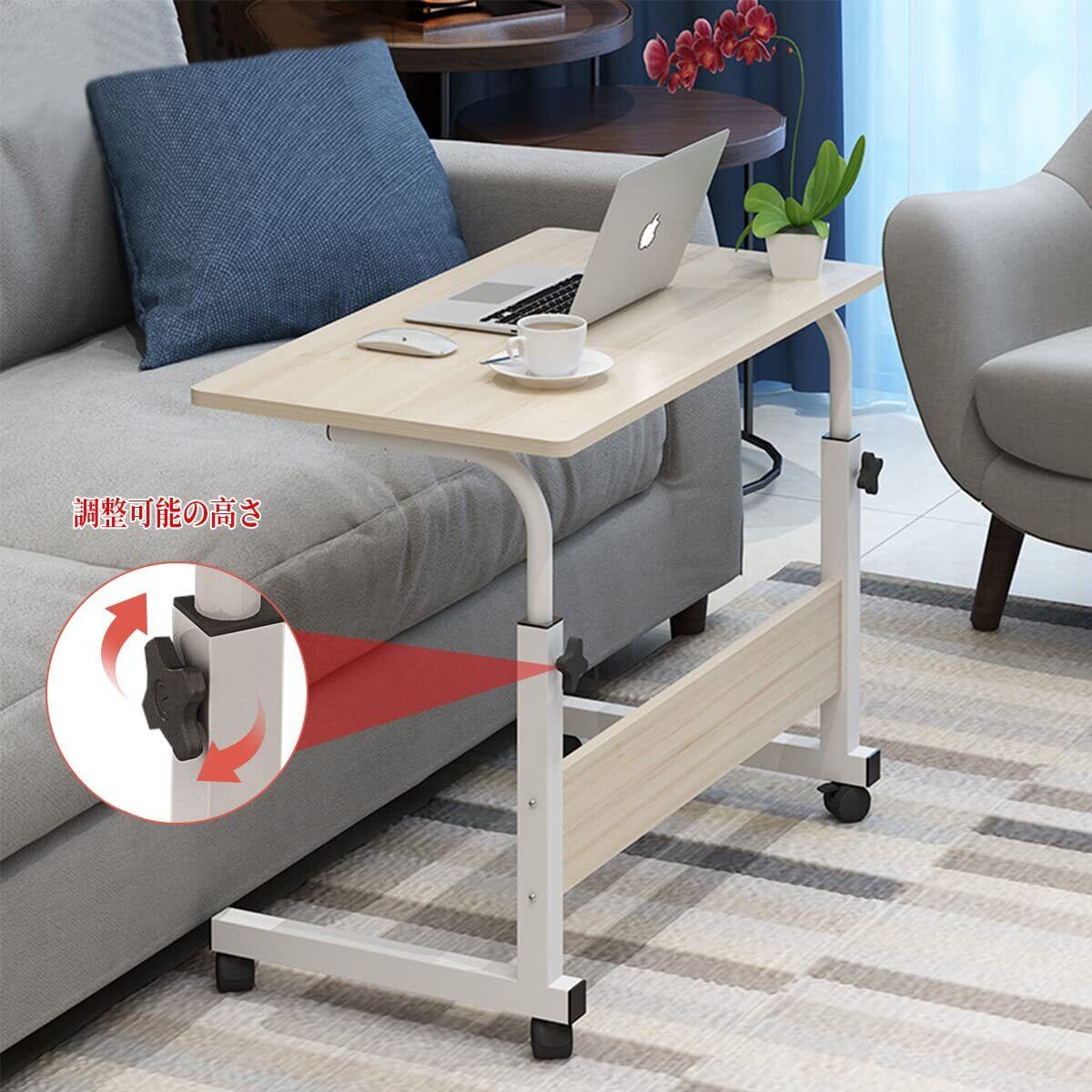 YOOVEE サイドテーブル キャスター付き 昇降式テーブル 移動式テーブル サイドテーブル 介護用テーブル パソコンデスク オフィスデスク ソフ オフィスデスク 高さ調節 在宅勤務 テレワーク 移動式テーブル 勉強机 仕事デスク おしゃれ 幅60cm×奥行40cm×高さ70~90cm 日本語説明書付き(ナチュラル)