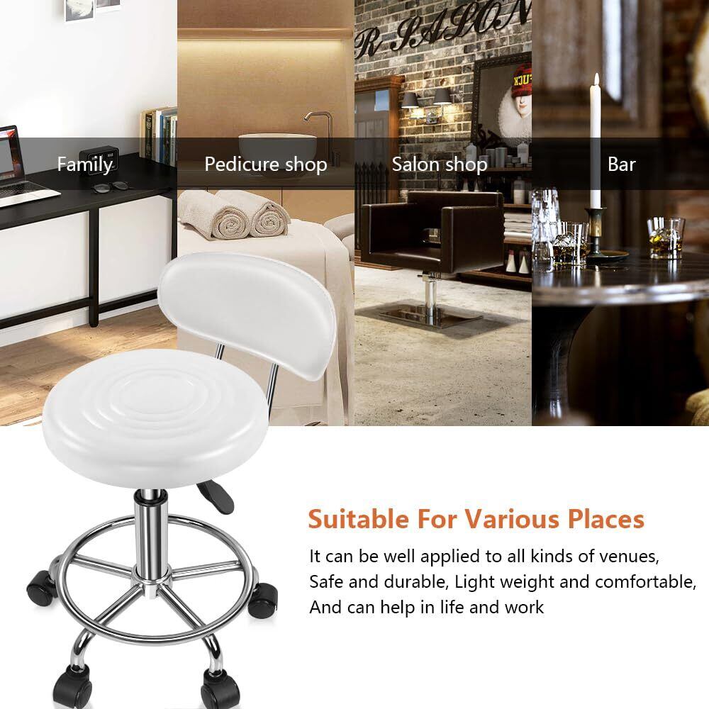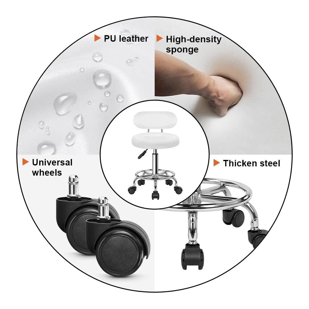 KKTONER 丸椅子 キャスター付きスツール 低い背もたれ脚つき 昇降スツール デスクチェア ネイル製図キッチン椅子 高さ調節 カウンターチェア PUレザー ホワイト S サイズ (白)