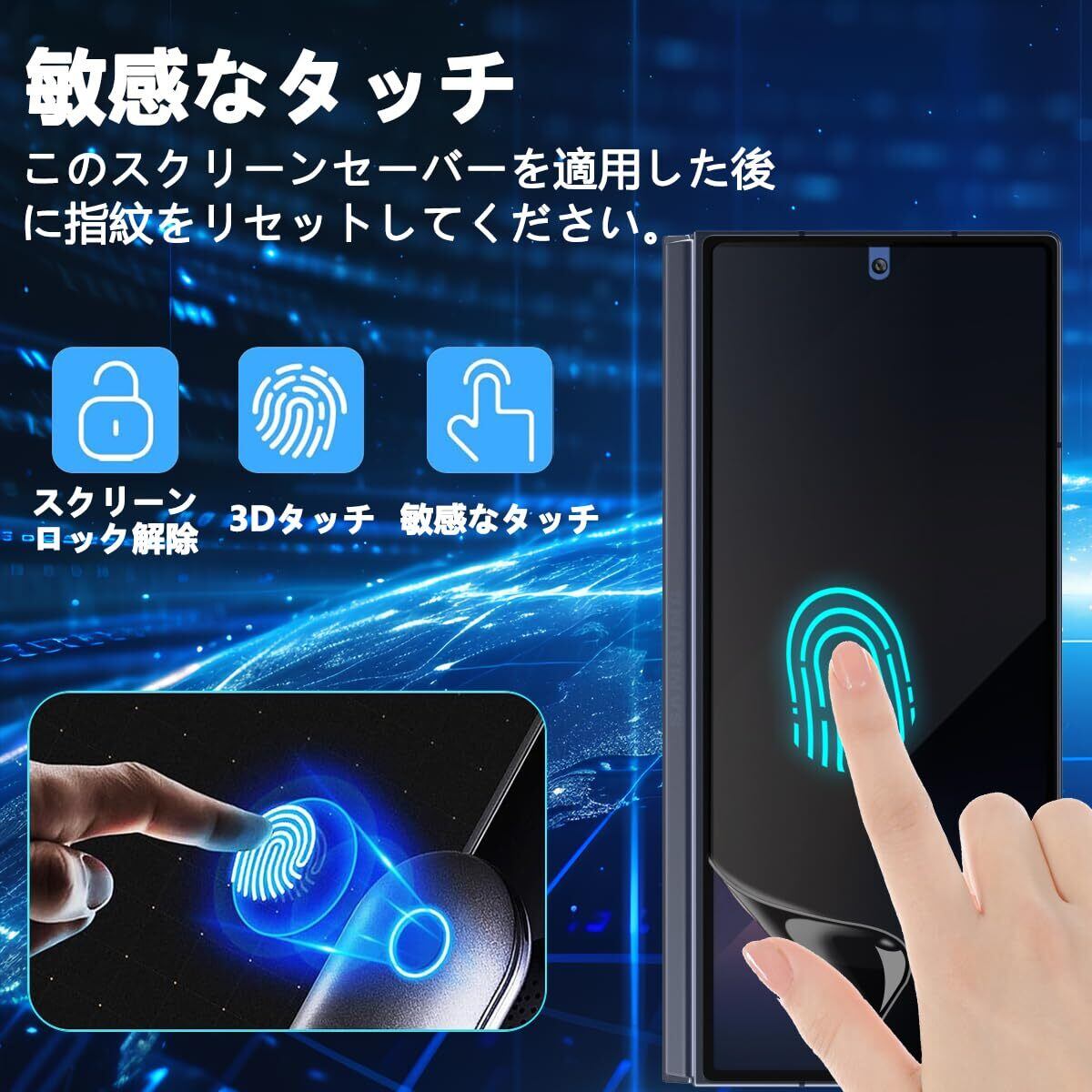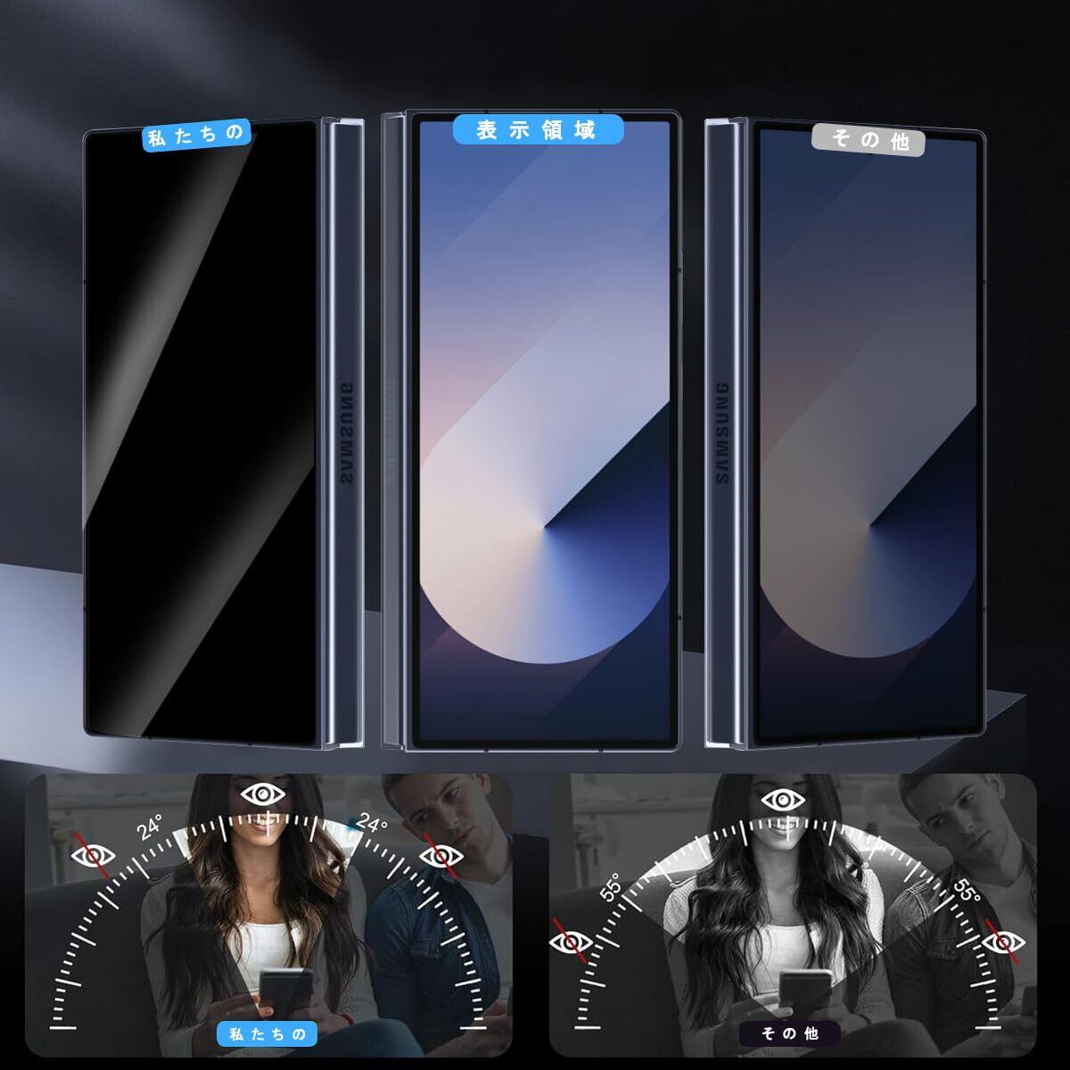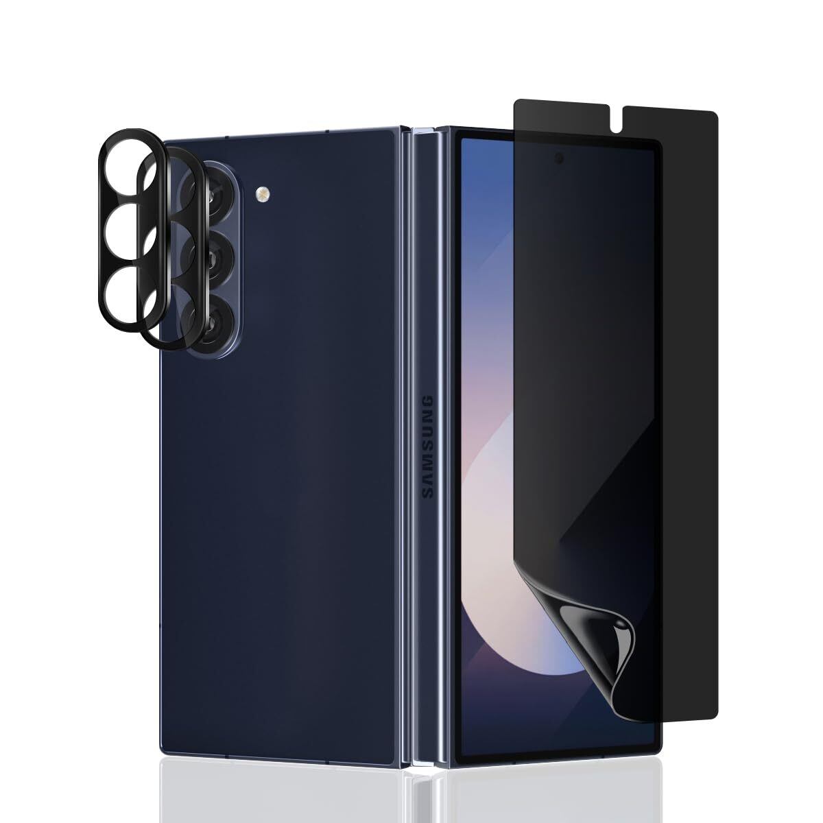 【対応機種】Galaxy Z Fold 6 フィルム 覗き見防止 1枚(TPU材質)+レンズ保護フィルム2枚。(注: のぞき見防止の特殊な素材のため そのため、指紋認証はあまり敏感ではありません)。