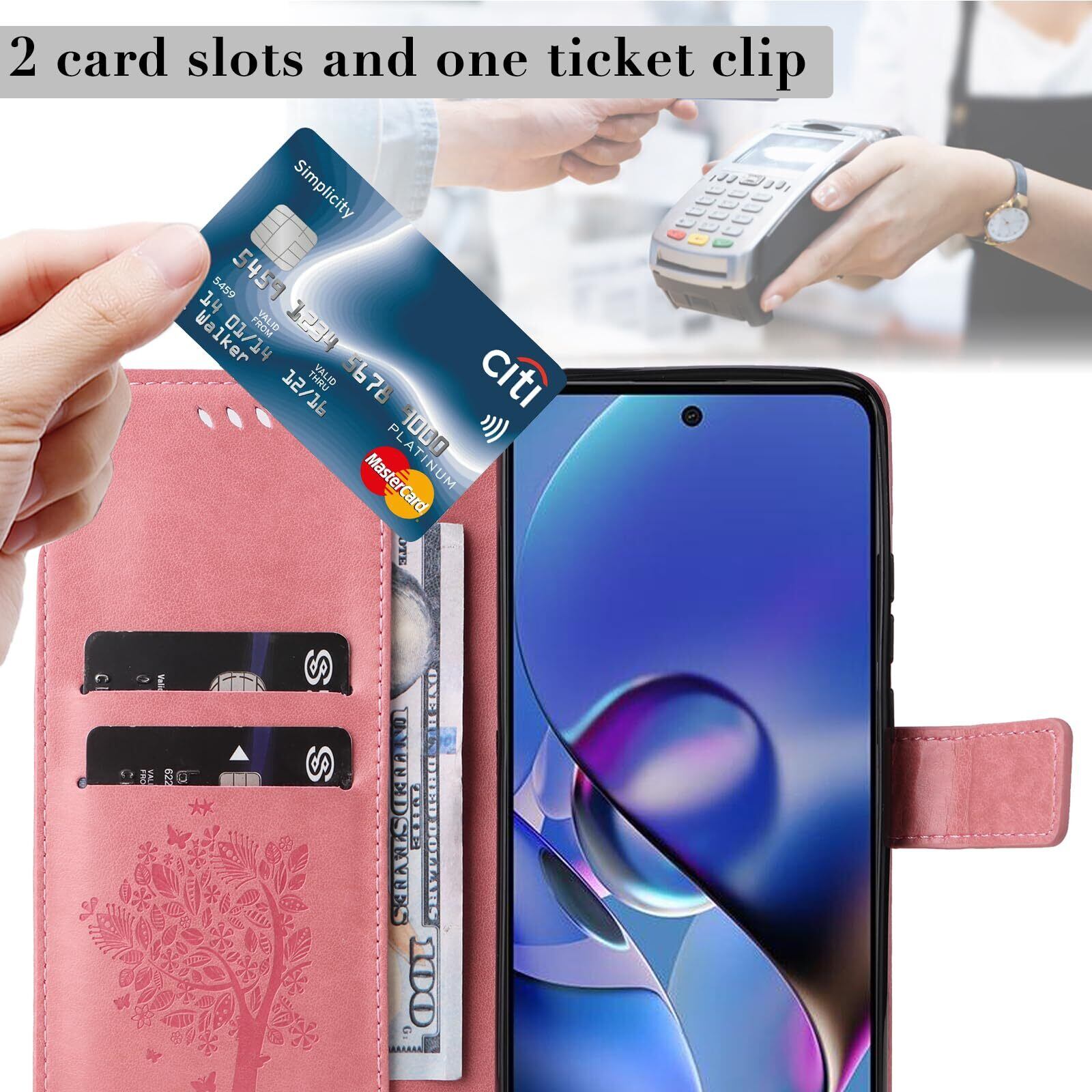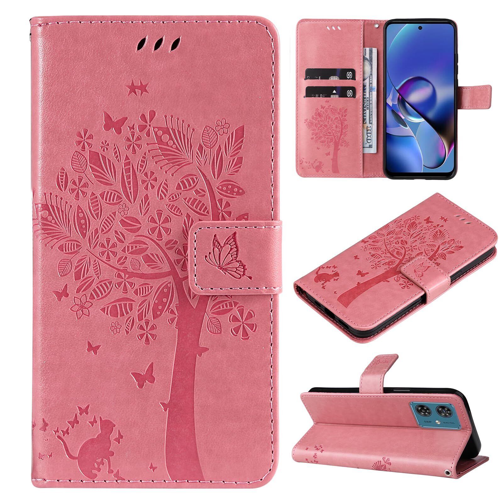 【Kawasina】 moto g64 5G ケース 手帳型 moto g64y 5G 手帳型ケース おしゃれ 猫 蝶々 内蔵マグネット カードポケット スタンド機能 モト g64 / g64y 5G ケース 防塵 軽量 耐衝撃 全面保護 ピンク