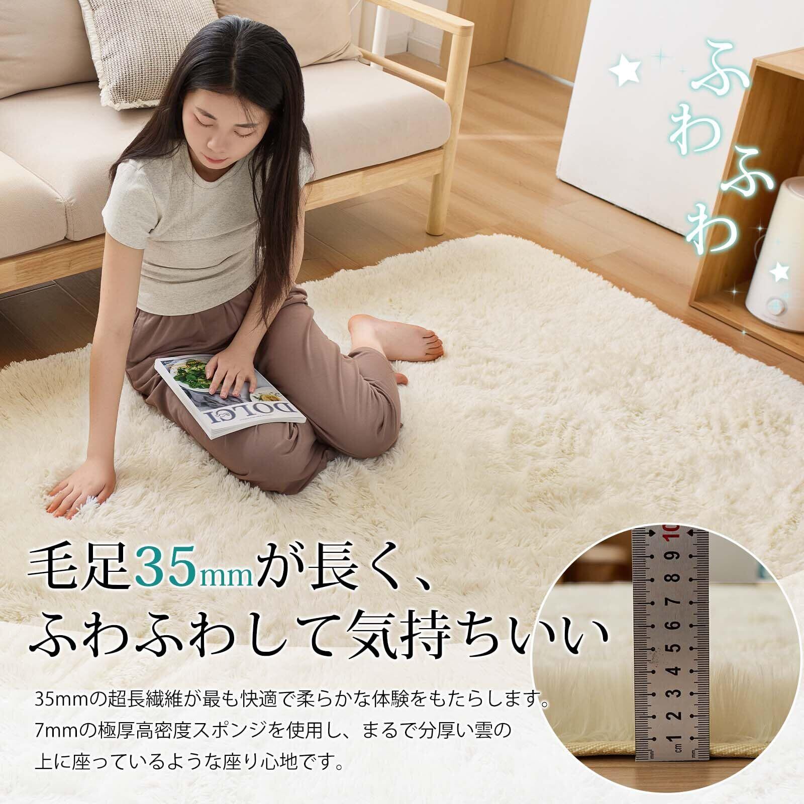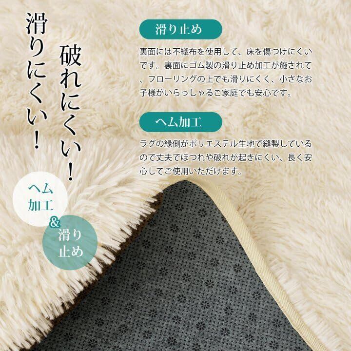 【抗菌防臭・滑り止めラグ】絨毯は抗菌防臭加工を施して、安全な品質で直接肌に触るのも大丈夫です。 ラグマットの裏面は滑り止め付き、ズレにくい、掃除機をかける時も滑らない。お年寄りやお子様のいらっしゃるご家庭でも安心してお使いいただけます。