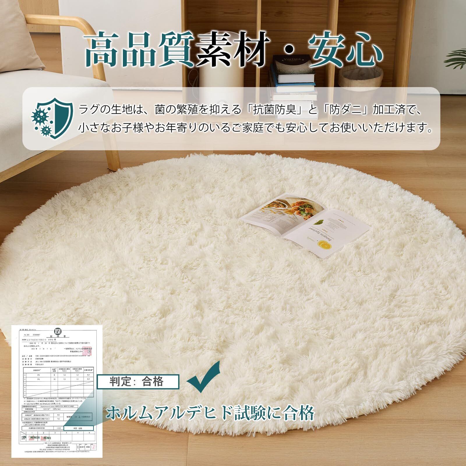 Housecover ラグ カーペット シャギーラグ ラグマット 円形 絨毯 直径120cm 滑り止め付 洗える 防ダニ 抗菌 防臭 オールシーズン快適に使用 床暖房 ホットカーペット対応 ふわふわ肌触り アイボリー01