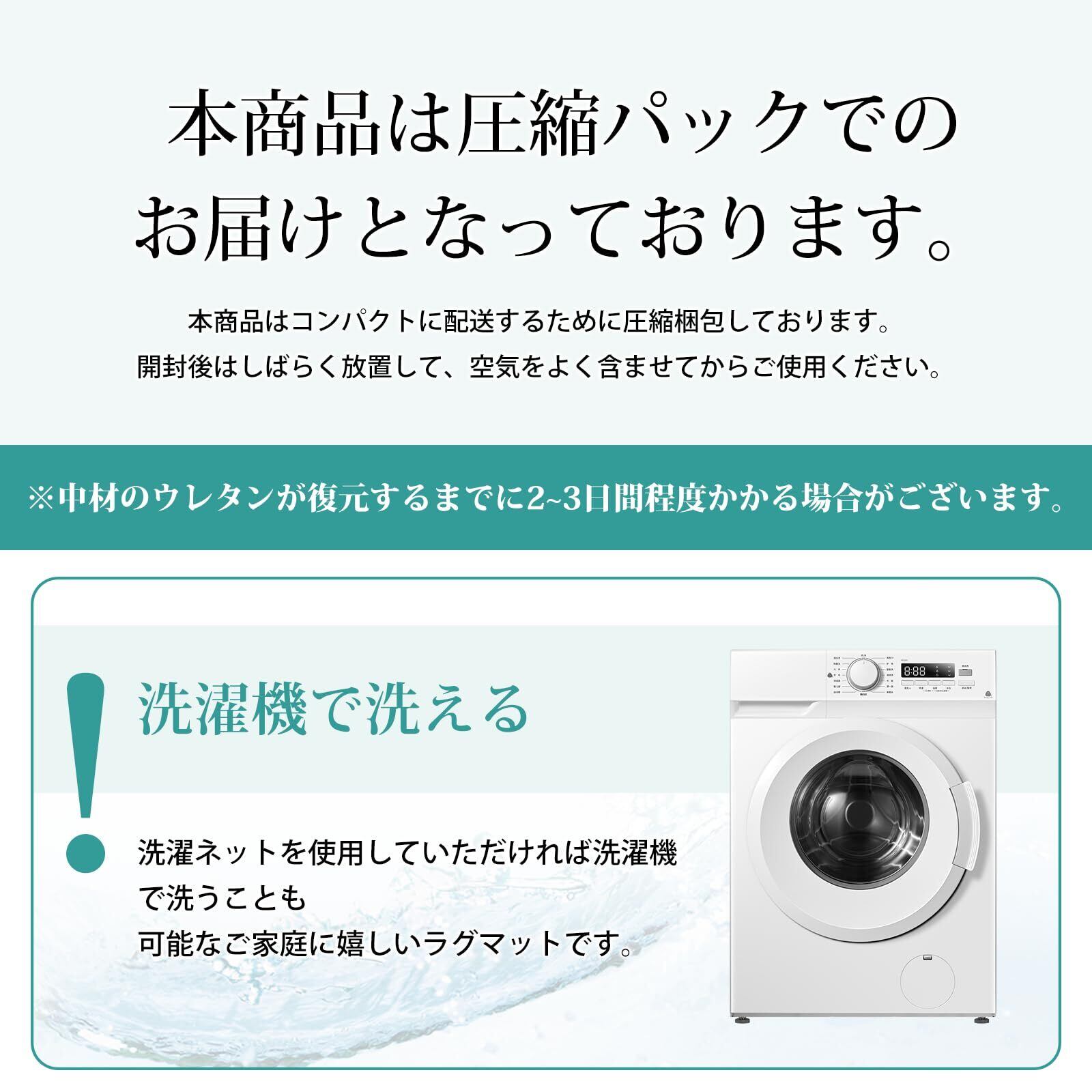 【洗えるカーペット-いつでも清潔に】ほどよいふわふわ感を持ちながら、洗濯機(洗濯ネットの使用をお勧め)で丸洗いできるので、お手入れしやすい。軽量型のラグマットなので、女性でも簡単に持ち運びでき、洗濯や取り替え、収納も気軽にできます。