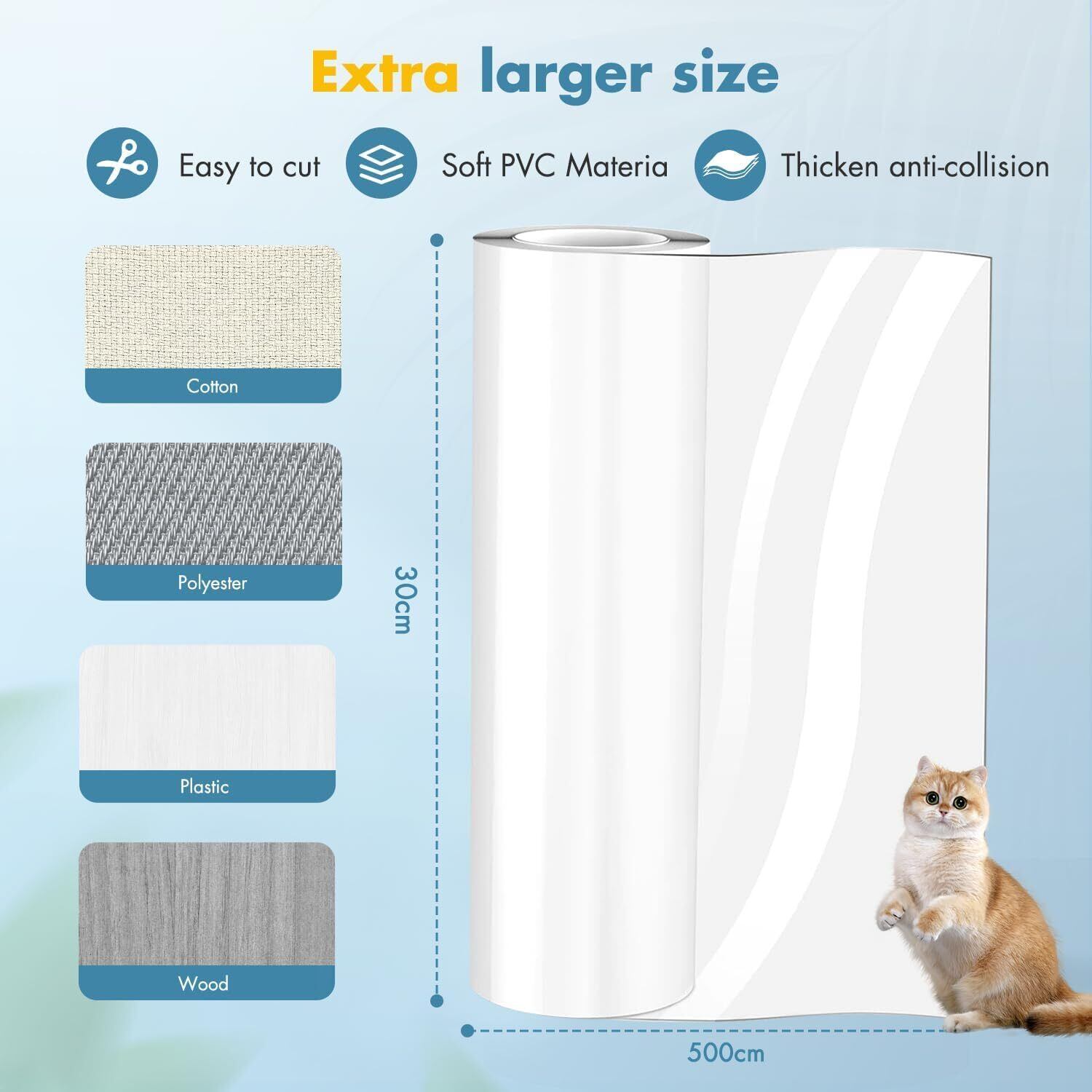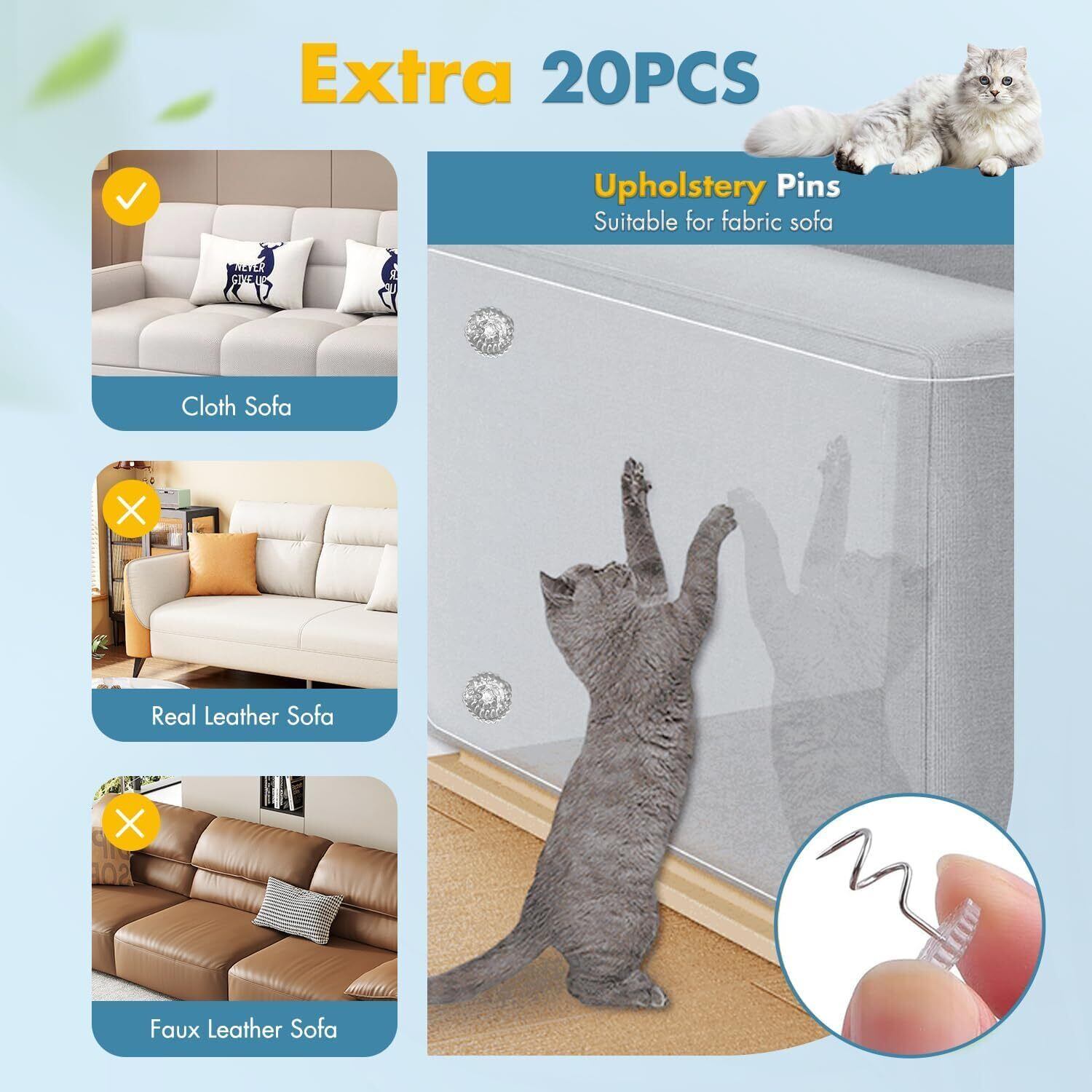 ノーブランド品猫つめとぎ防止ステッカー爪とぎ防止シート引っ掻き傷・爪とぎ・汚れ防止爪研ぎ防止シート半透明傷防止ビニール製ツめ傷保護シート家具保護しつけ用ソファーテープ式粘着タイプロール型30cmx5m+固定ネジ20本