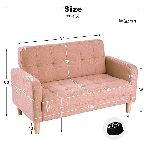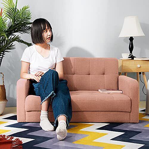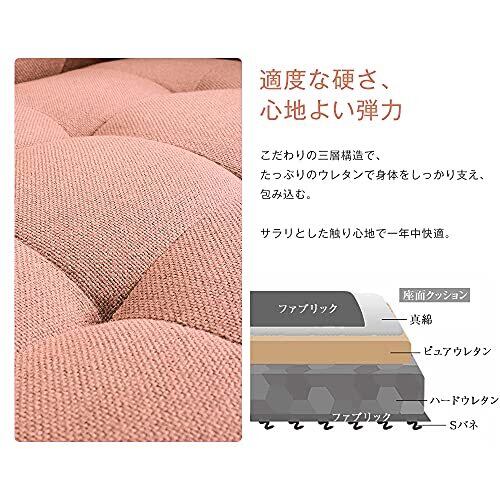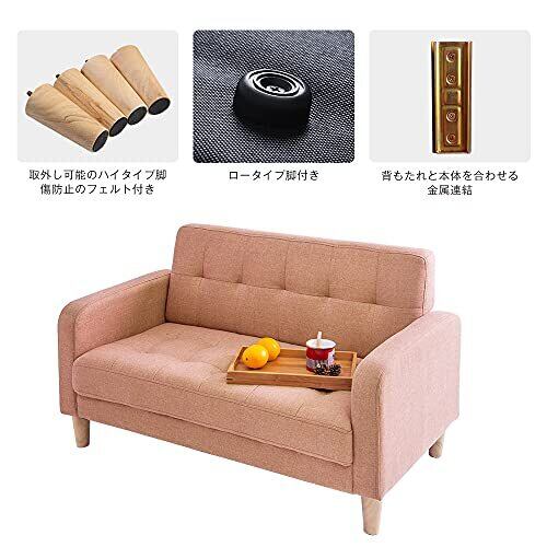 オーエスジェイ(OSJ) ソファー 2人掛け 肘付き 天然木脚 幅約110cm 簡単組み立て 2WAY ファブリック おしゃれ 新生活 北欧スタイル ソファベッド ピンク