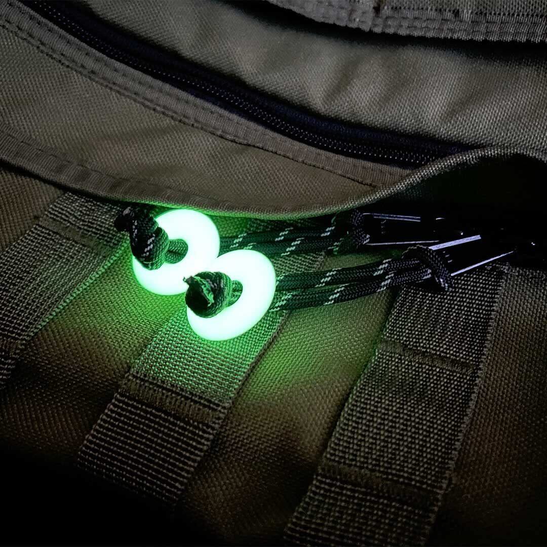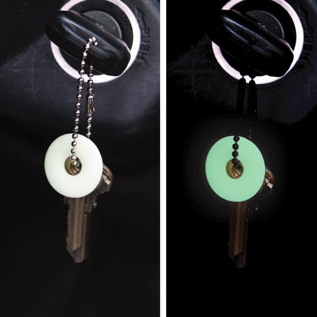 太陽光、スマートフォンのライト等様々な光源から蓄光することができるリングパーツ5個セット。キーリングやジップに付けることで暗い状況でも素早く認識することができます。 アメリカの政府機関と取引を行うために必要なCAGE CODE を取得したアメリカ企業にて製作されています。リング、タグはSAR(捜索救助部隊)からのギアやジッパーに付けられるパーツの要望により開発されました。 素材は耐熱シリコーンゴムを採用。一般的に流通している蓄光材と比べると驚くほど明るく、長くても12時間程度の発光時間が多い中、最大24時間発光し続けることができます。 アウトドアギアの目印、キーリング、USBドライブ、鞄のジップなど日常生活の様々なシーンで活躍してくれます。