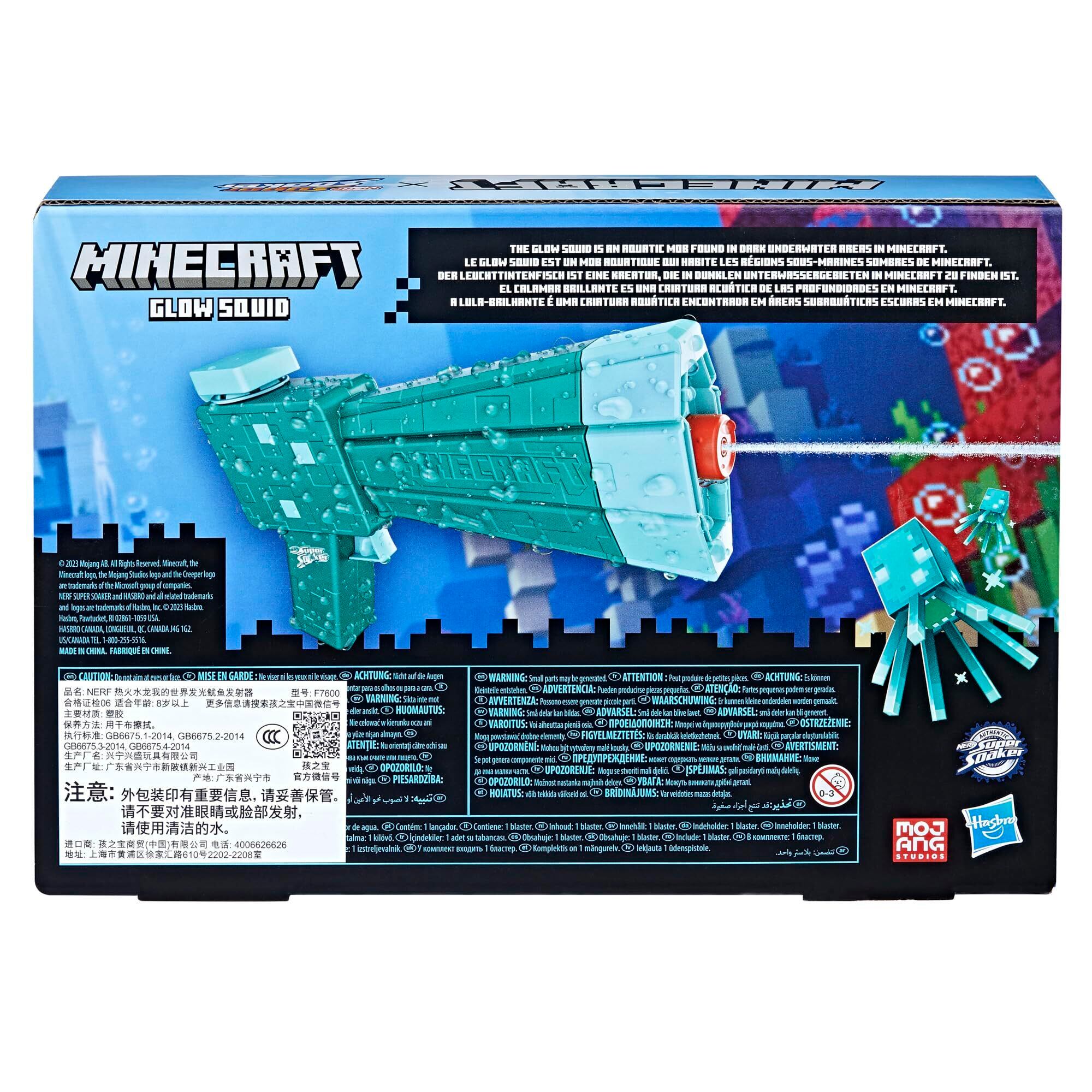 SUPERSOAKER ナーフ スーパーソーカー Minecraft マインクラフト GLOW SQUID ウォーターブラスター, マインクラフトダンジョンズ イカモブのデザイン, 屋外向け ウォータートイ, お子さま向け 屋外ゲーム F7600 正規品 水鉄砲 子供 大人