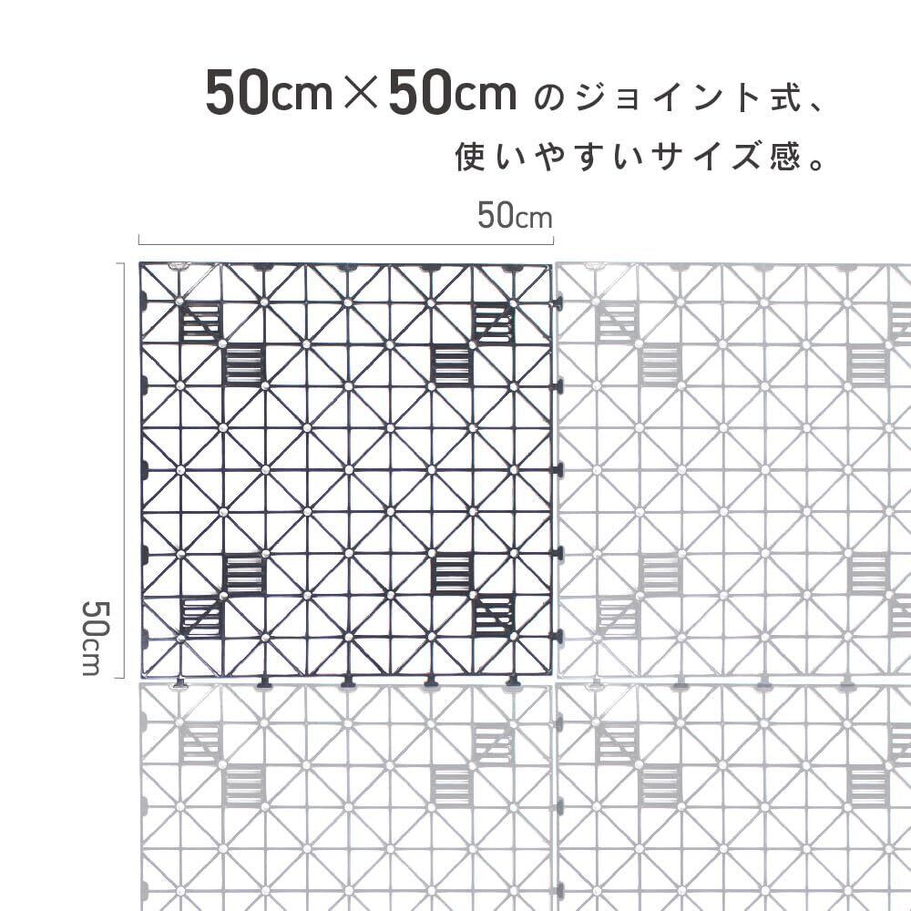 ■特徴 コンクリート面と人工芝の間の排水性・通気性を確保し、人工芝を清潔に保ちます。・エアスルー構造で湿気を逃がすので、清潔・速乾。カット溝つきなので、10cm単位でカット可能!設置スペースにあわせて調整していただけます!