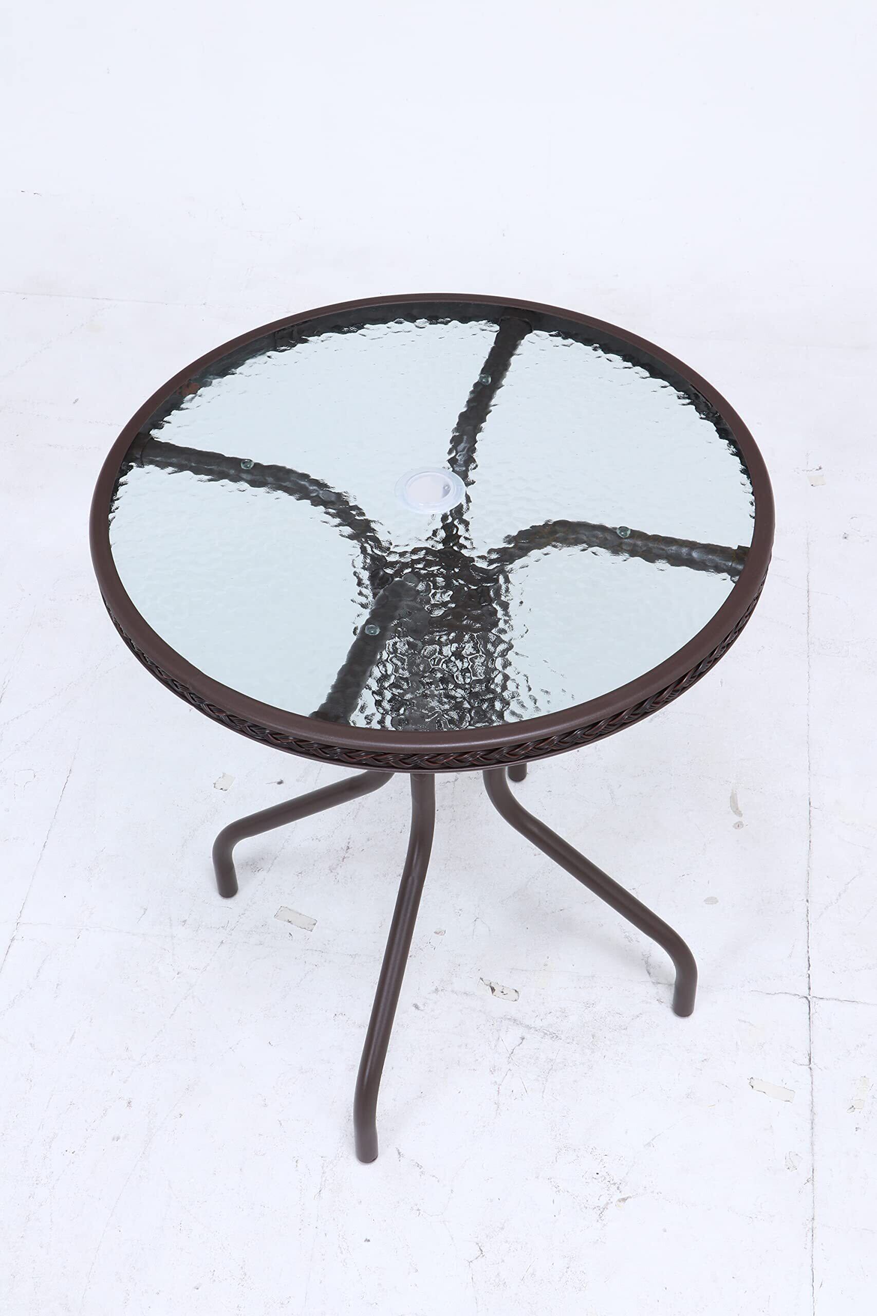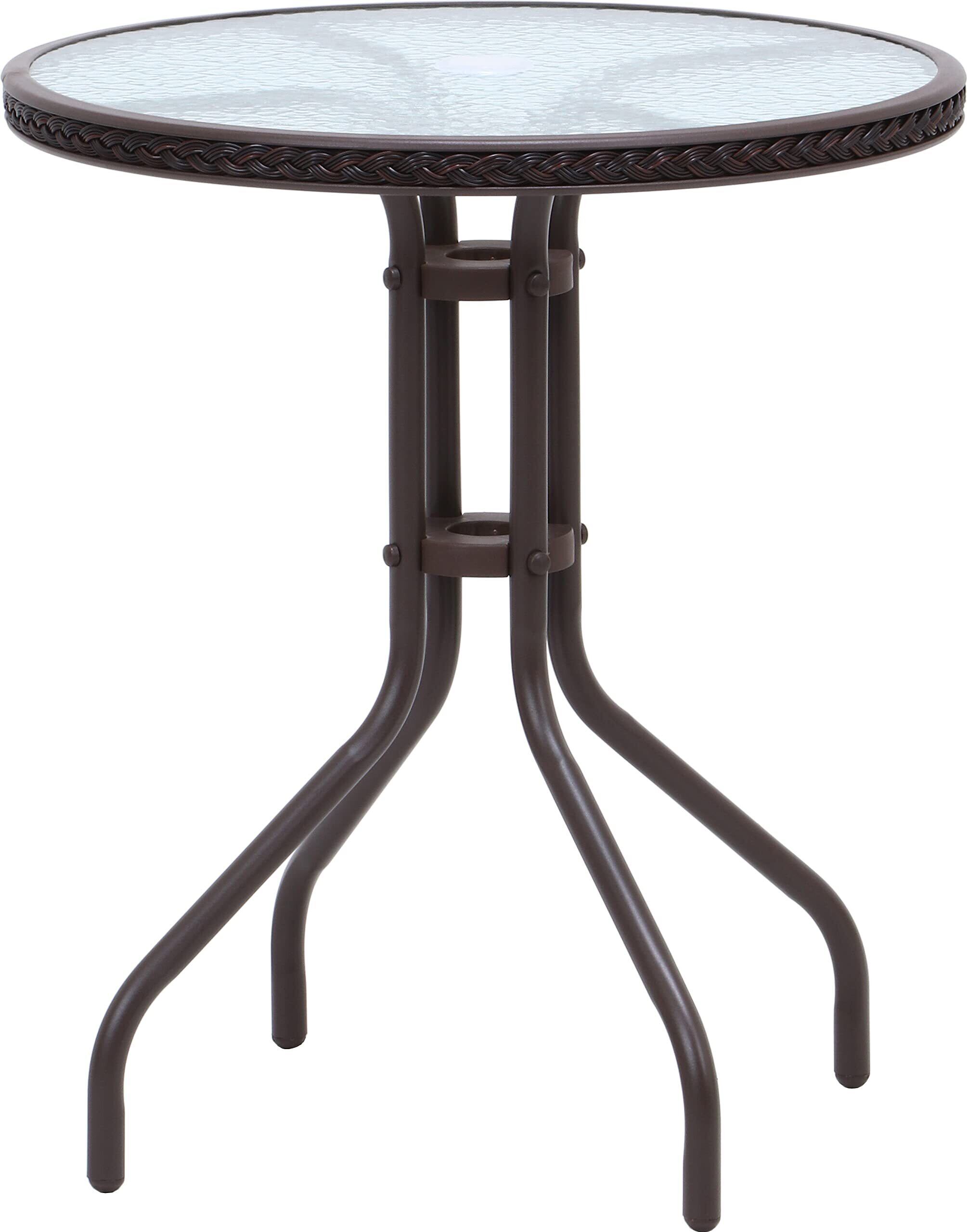不二貿易 ガラステーブル 2 幅60×奥行60×高さ70㎝ ブラウン ガーデン パラソル穴付 37292