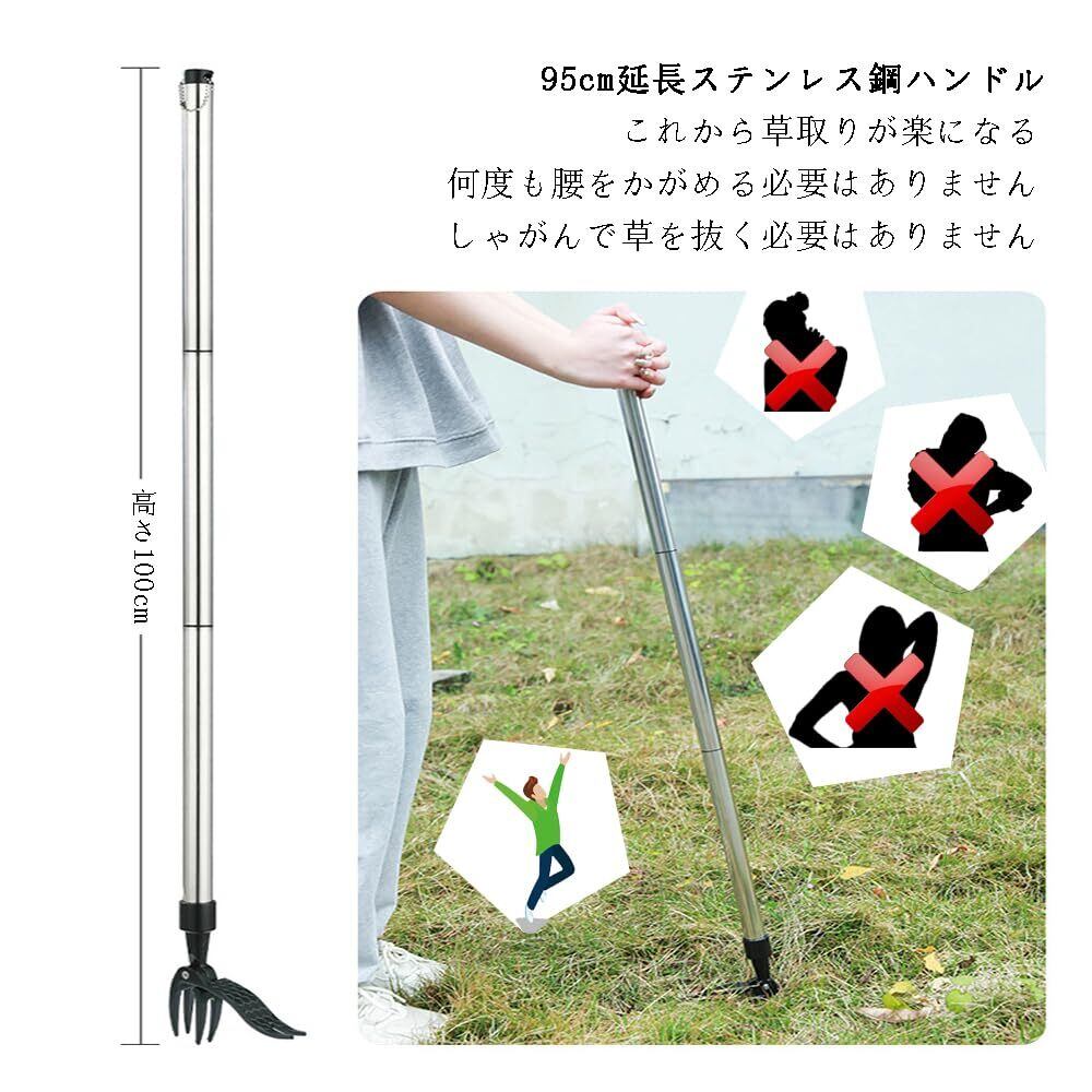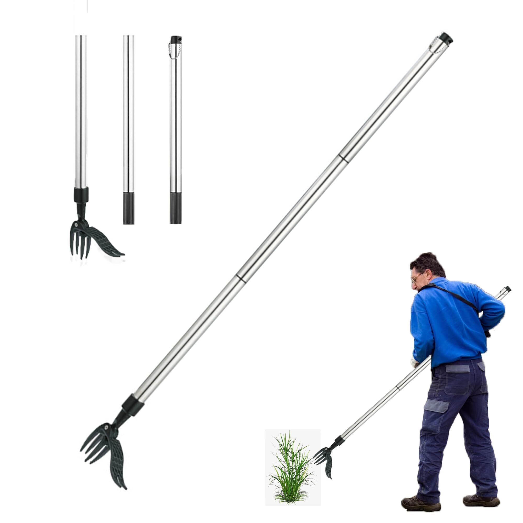 DZANNC 長柄草抜き 草取り道具 園芸用 雑草取り器具 3段階の直立手動で 草抜きニッパー 強力な4つの爪 立ち雑草の根の引き抜き 農業用 草刈り 耐用 便携 (187)