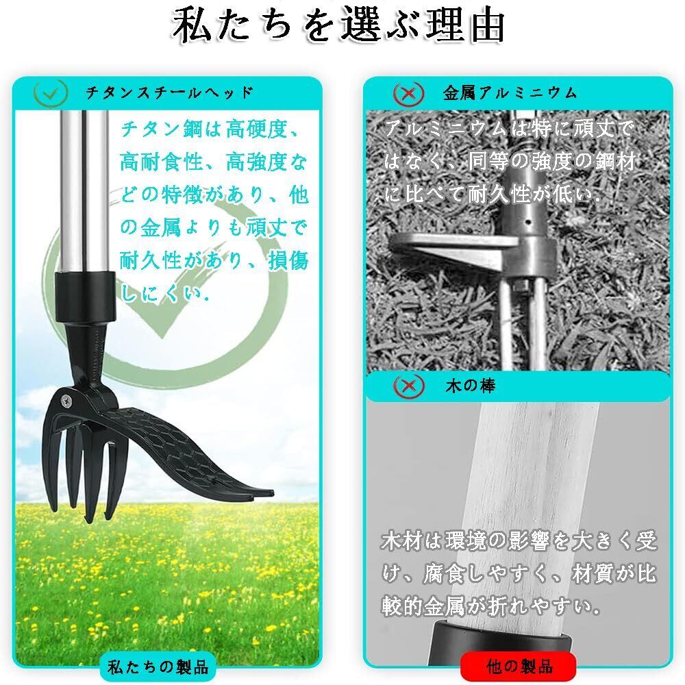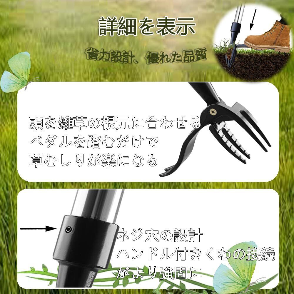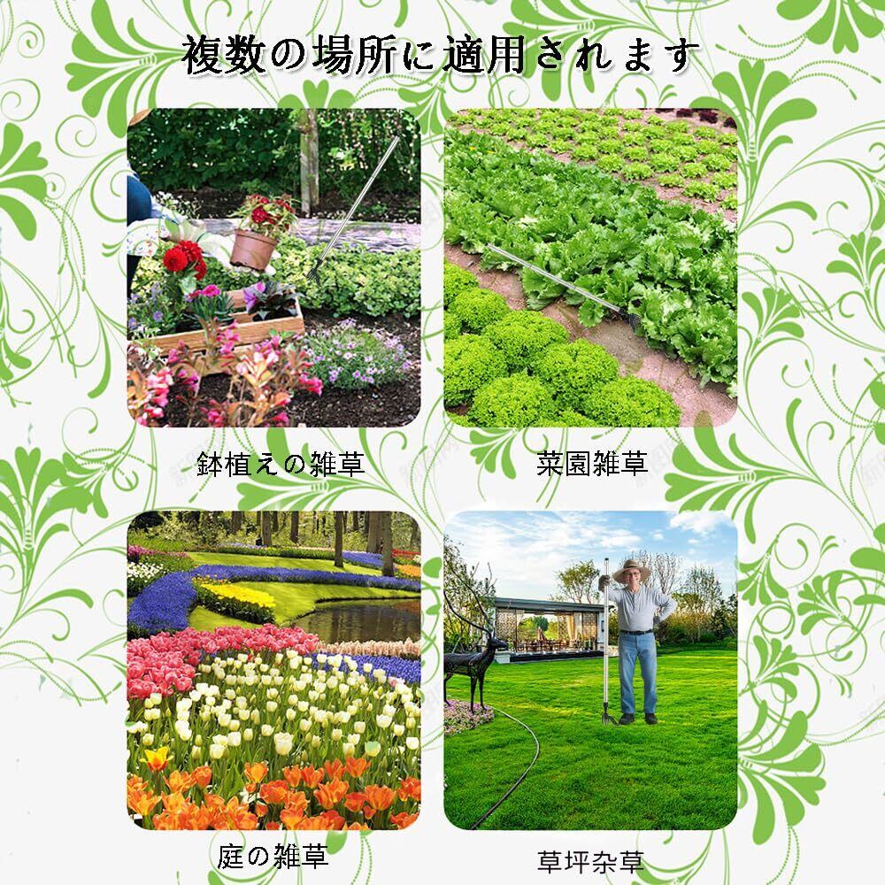 【応用範囲】:カニ草、ヒドラアザミ、竜頭根、木の根、カンナ、クローバー、ゴボウ、低木などに適しています。草抜き道具は草の根を徹底的に抜いて、根源から侵入性の雑草を取り除くことができて、花園、裏庭、前庭の景観の良い道具です。