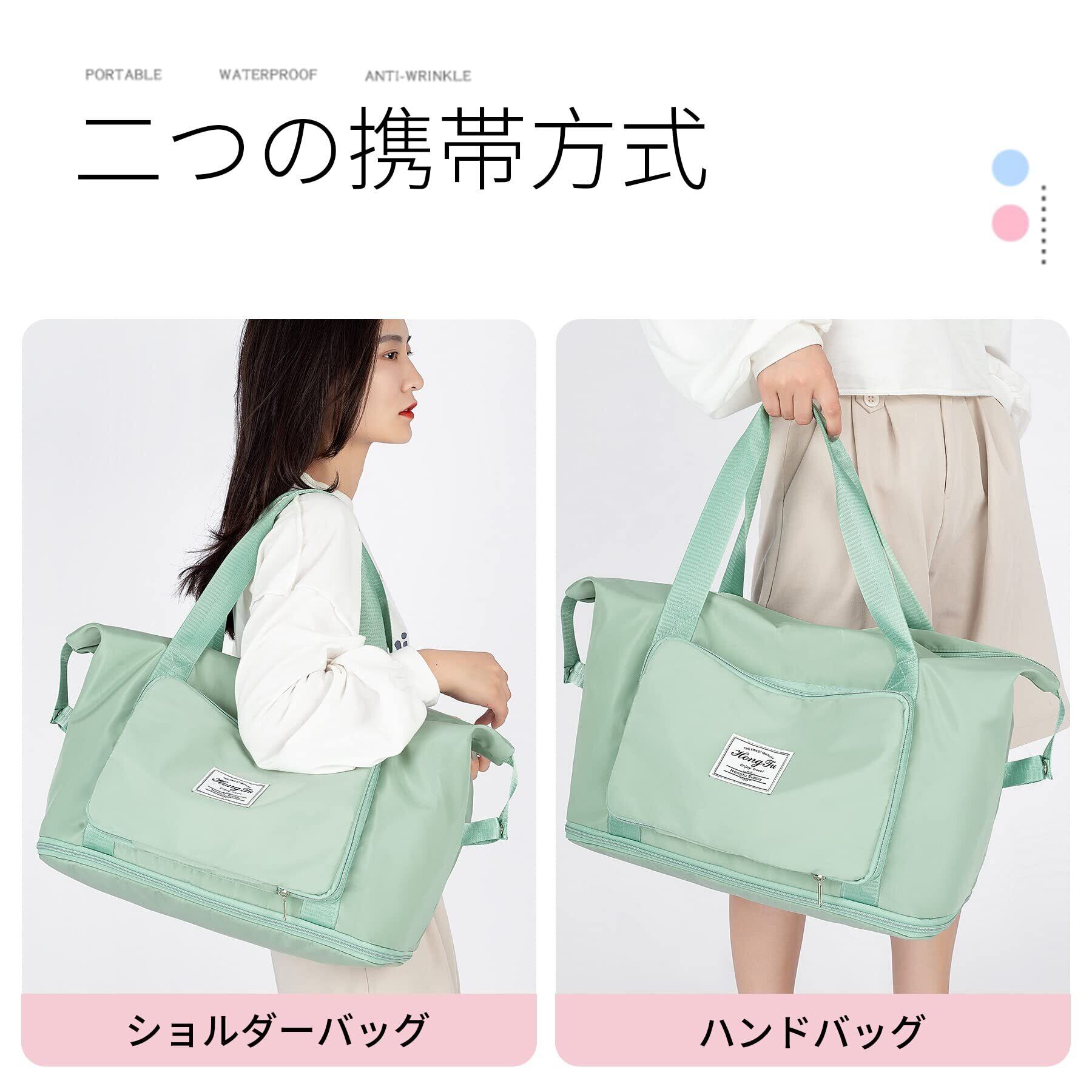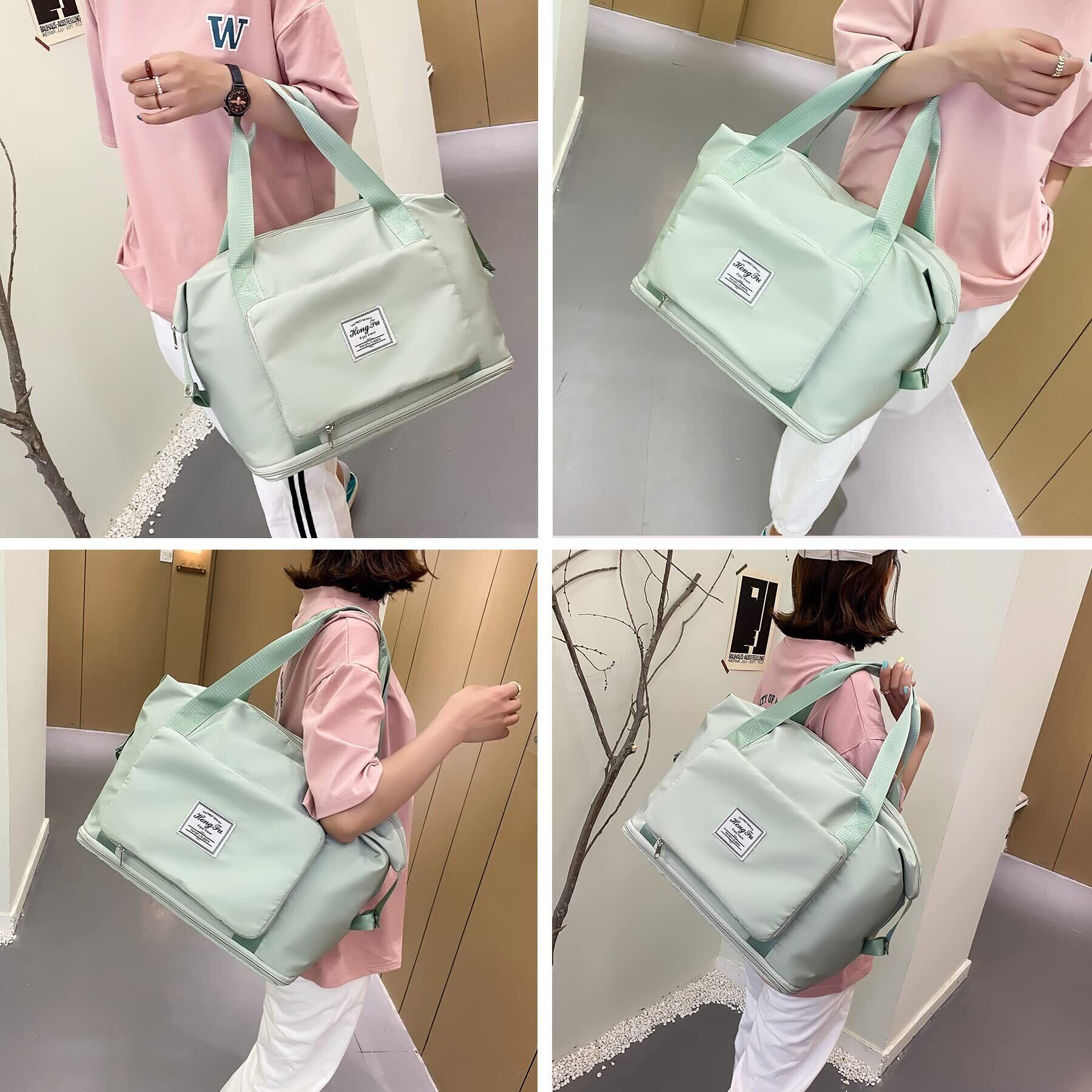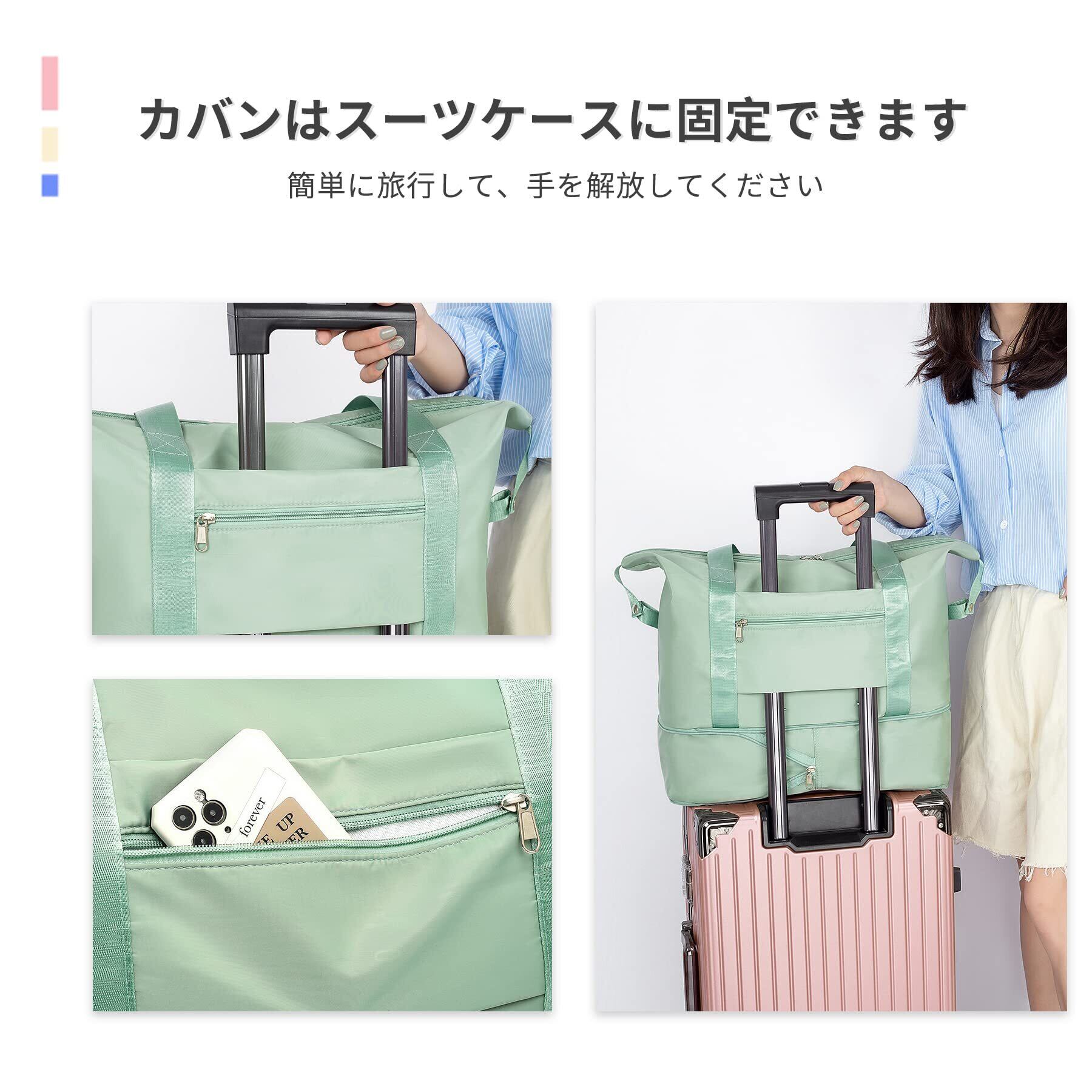 ALLMIRA キャリーオンバッグ 折りたたみ ボストンバッグ 折畳み 大容量 旅行バッグ スポーツバッグ ダッフルバッグ トラベルバッグ 防水 軽量 折り畳み 旅行カバン キャリーオン トートバッグ 乾湿分離 撥水 レディース 出張 修学旅行 (ブラック) (桜色) (緑)