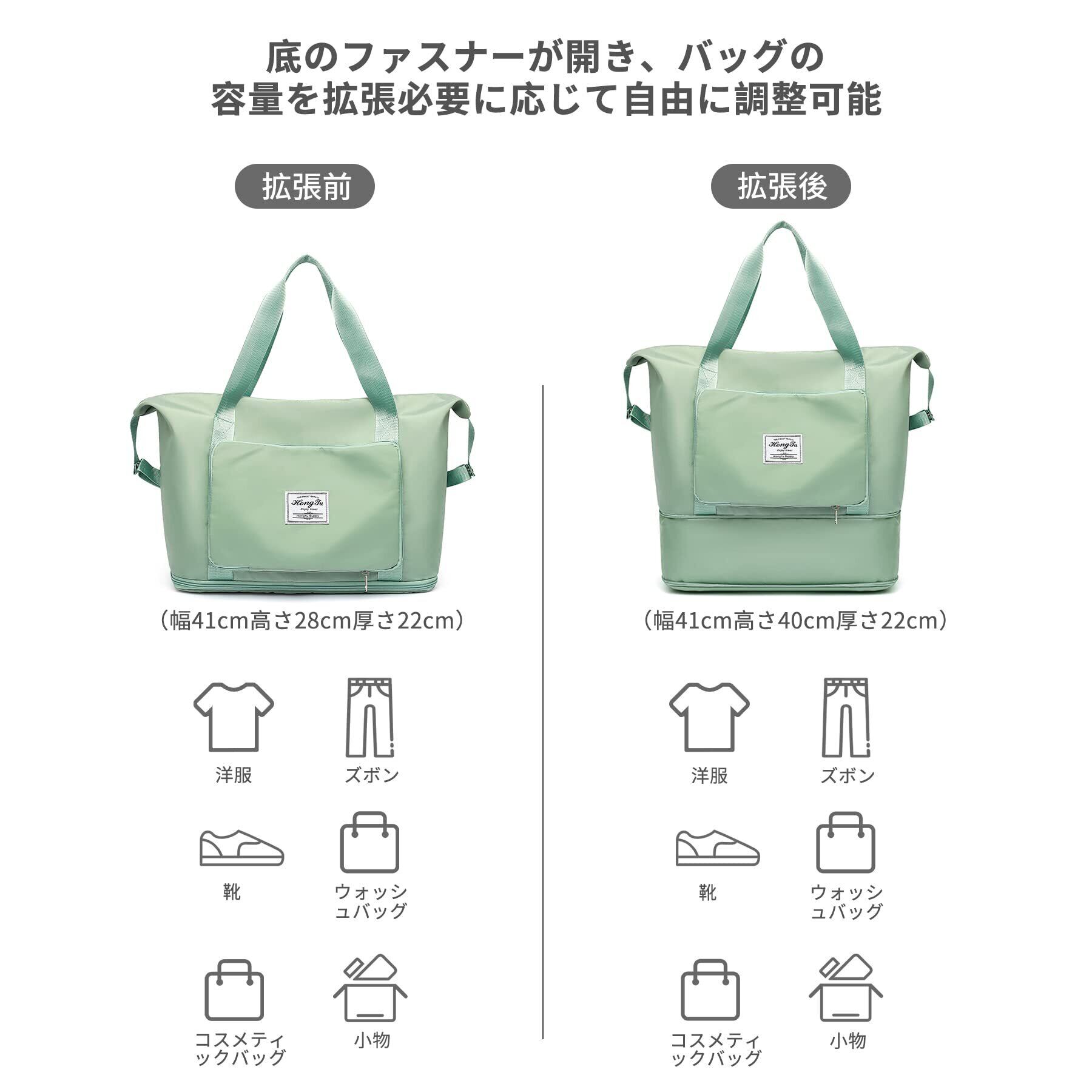 【底部拡張可能】底部はジッパーで拡張機能を隠し、底部は10cm拡張可能で、必要に応じて容量を調整できます。