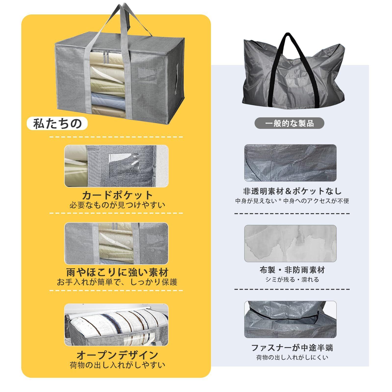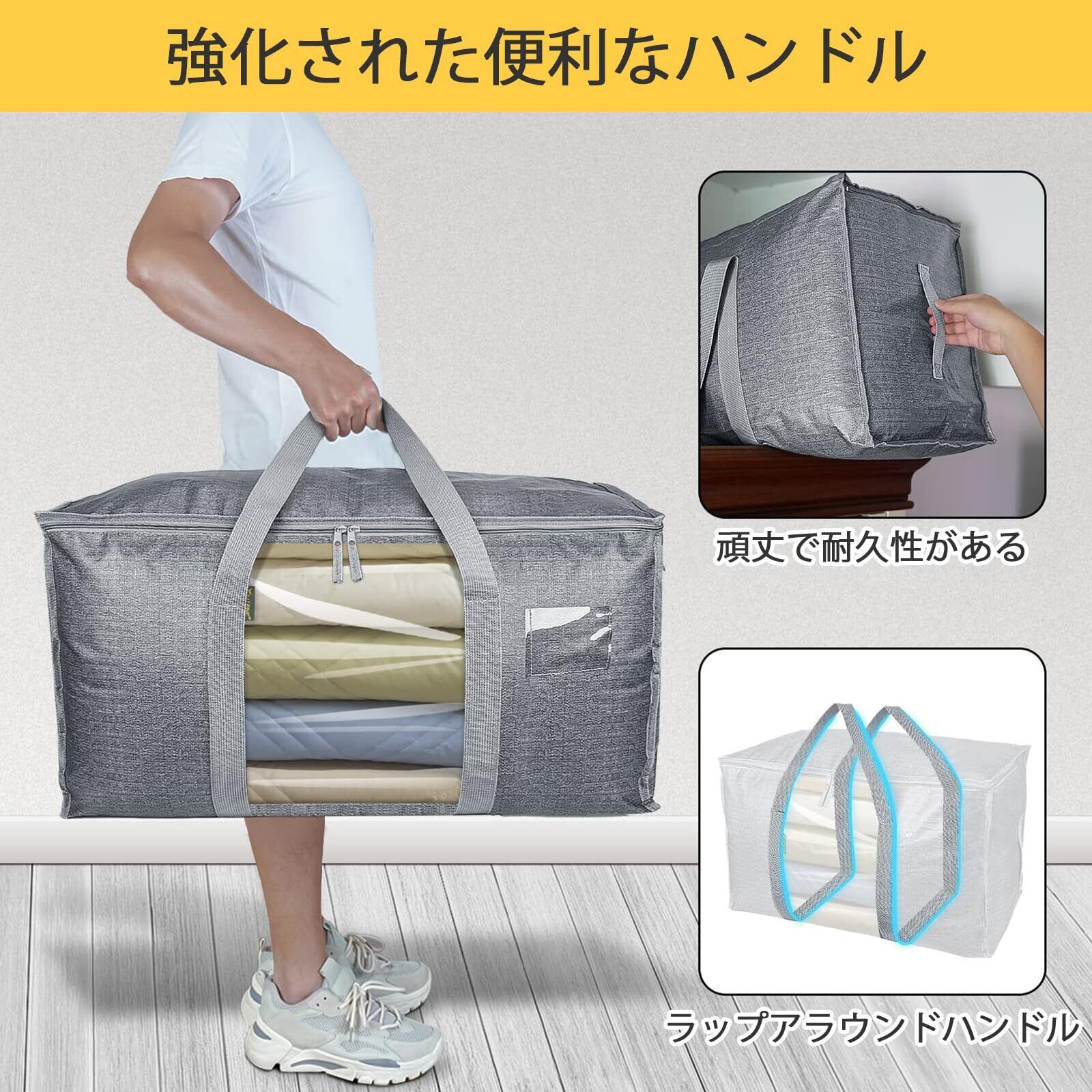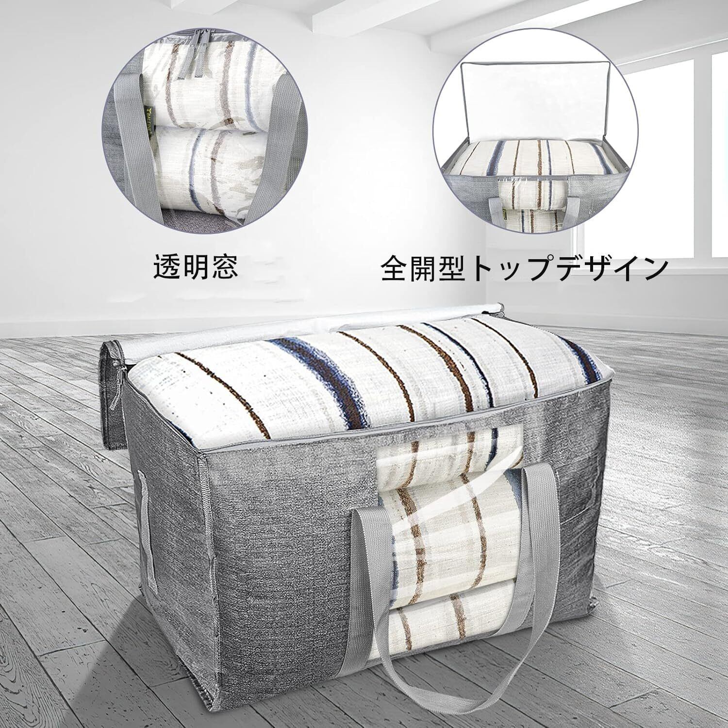 布団収納バッグ 透明窓付き 布団収納袋 持ち手付き 引っ越しバッグ 93L 大容量 ふとん 収納袋 大型収納袋 衣類 洋服収納 防塵防水バッグ 省スペース 引っ越し キャンプ 旅行収納用 (グレー, 4枚セット)