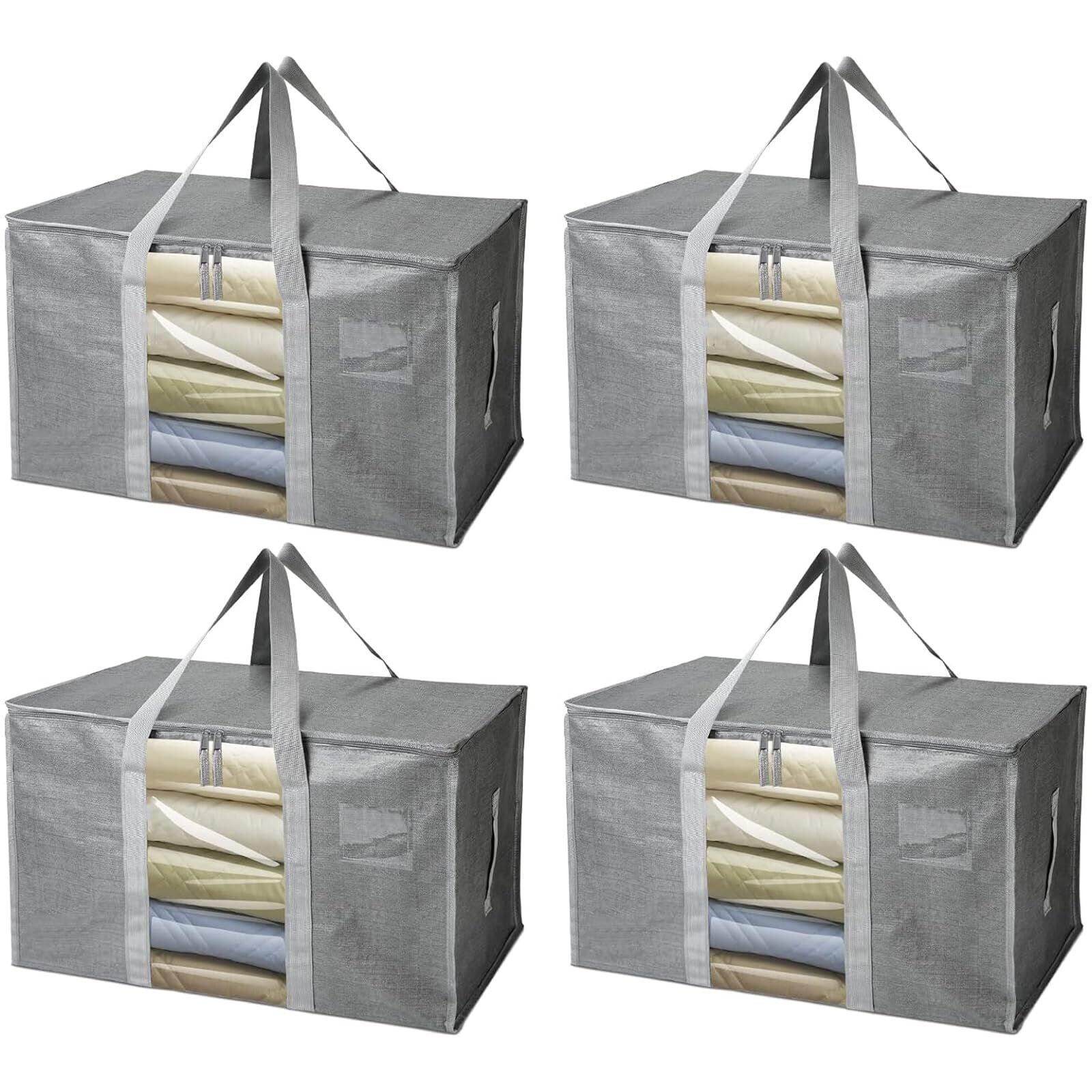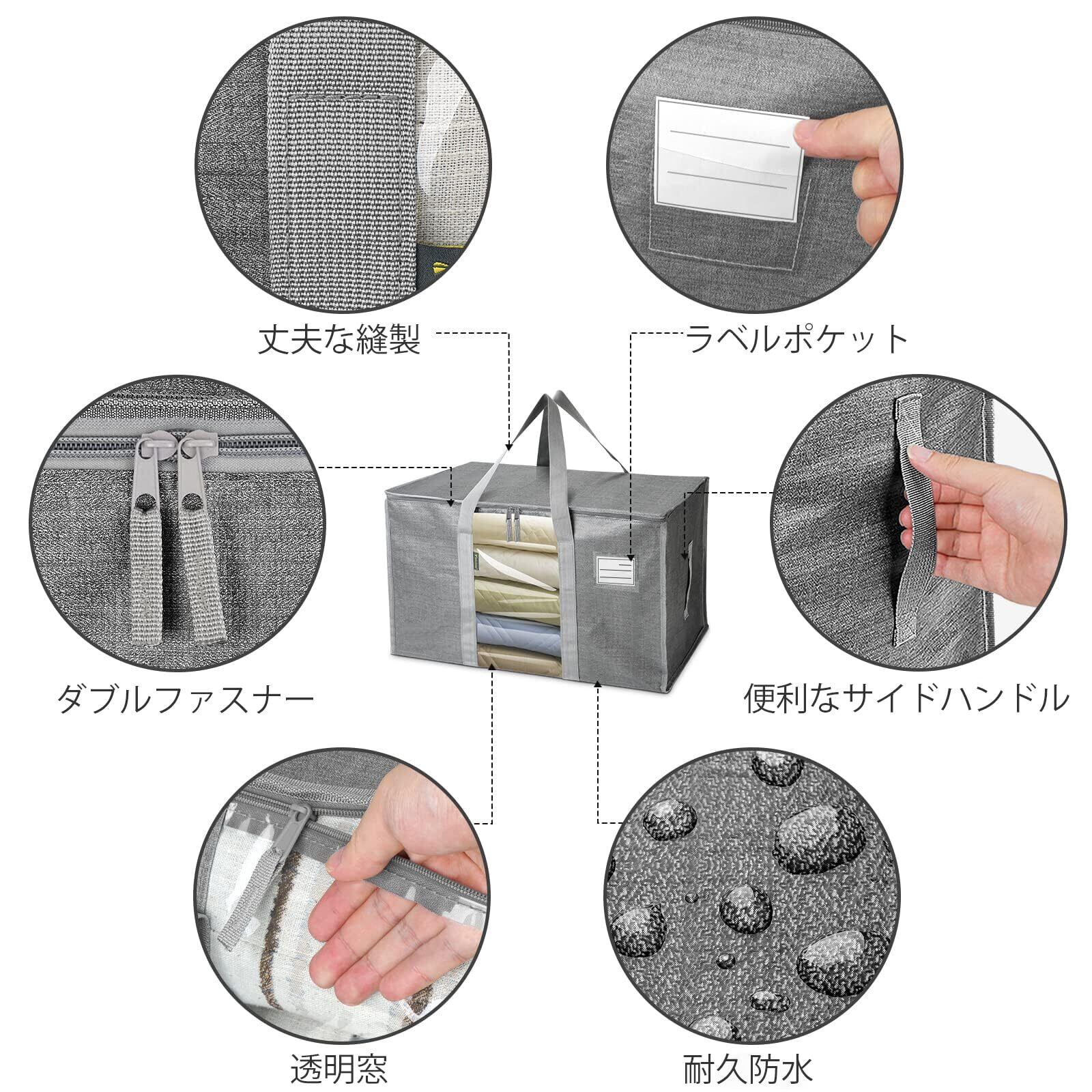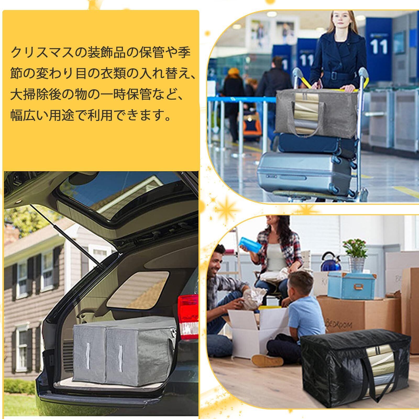 布団収納バッグ 透明窓付き 布団収納袋 持ち手付き 引っ越しバッグ 93L 大容量 ふとん 収納袋 大型収納袋 衣類 洋服収納 防塵防水バッグ 省スペース 引っ越し キャンプ 旅行収納用 (グレー, 4枚セット)