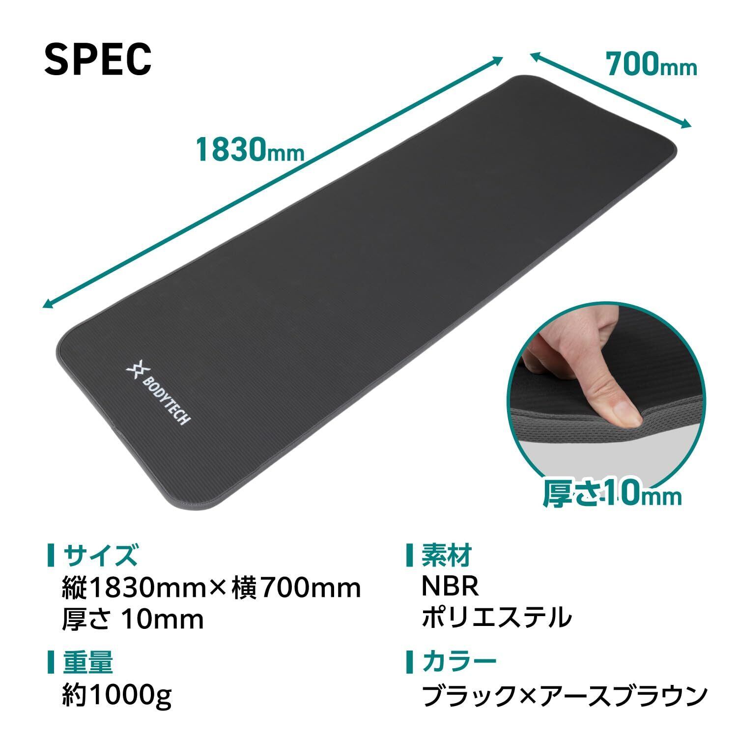 【Amazon.co.jp限定】 ボディテック ヨガマット 10mm 厚め 幅広 大きめ エッジガードマット トレーニングマット ストレッチマット ピラティスマット 筋トレ エクササイズ キャリーバンド付き