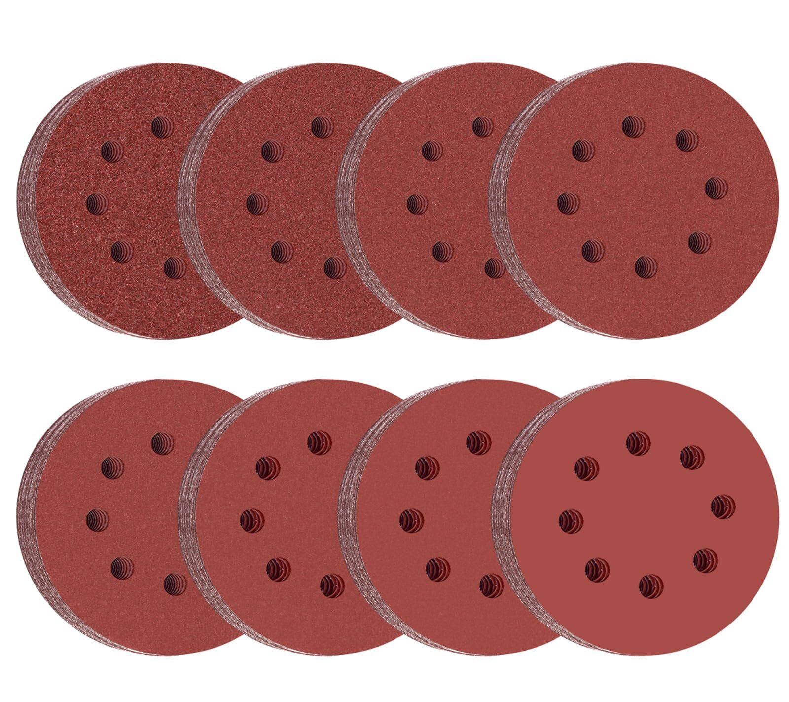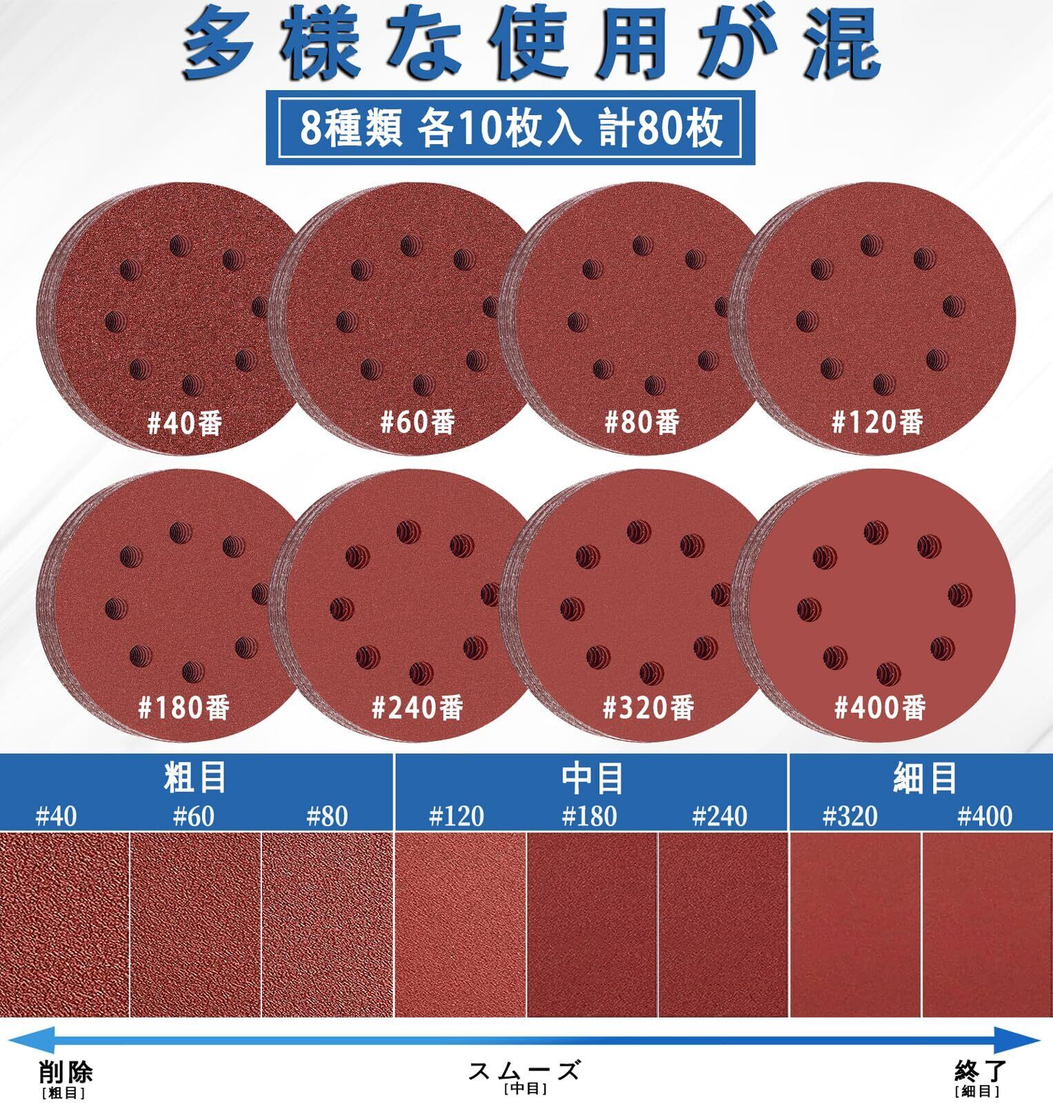 IROKCAKPT ディスクペーパー 125mm ランダムサンダー ペーパー 丸型 8穴 マジック式 サンディングディスク,計80枚入セット(#40/#60/#80/#120/#180/#240/#320/#400 ×各10枚)木工DIY作業に 金属磨き 車の研磨