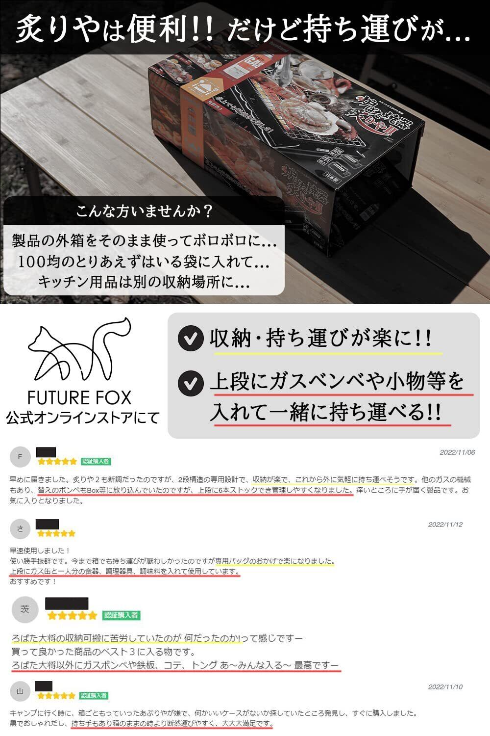 Amazonなどで炙りやでも使用できるツールケースが販売されていますが、専用のものがなかなかなく、多少サイズが合わないものが多いです。 この点からFUTURE FOXでは本製品を開発することに決めました。