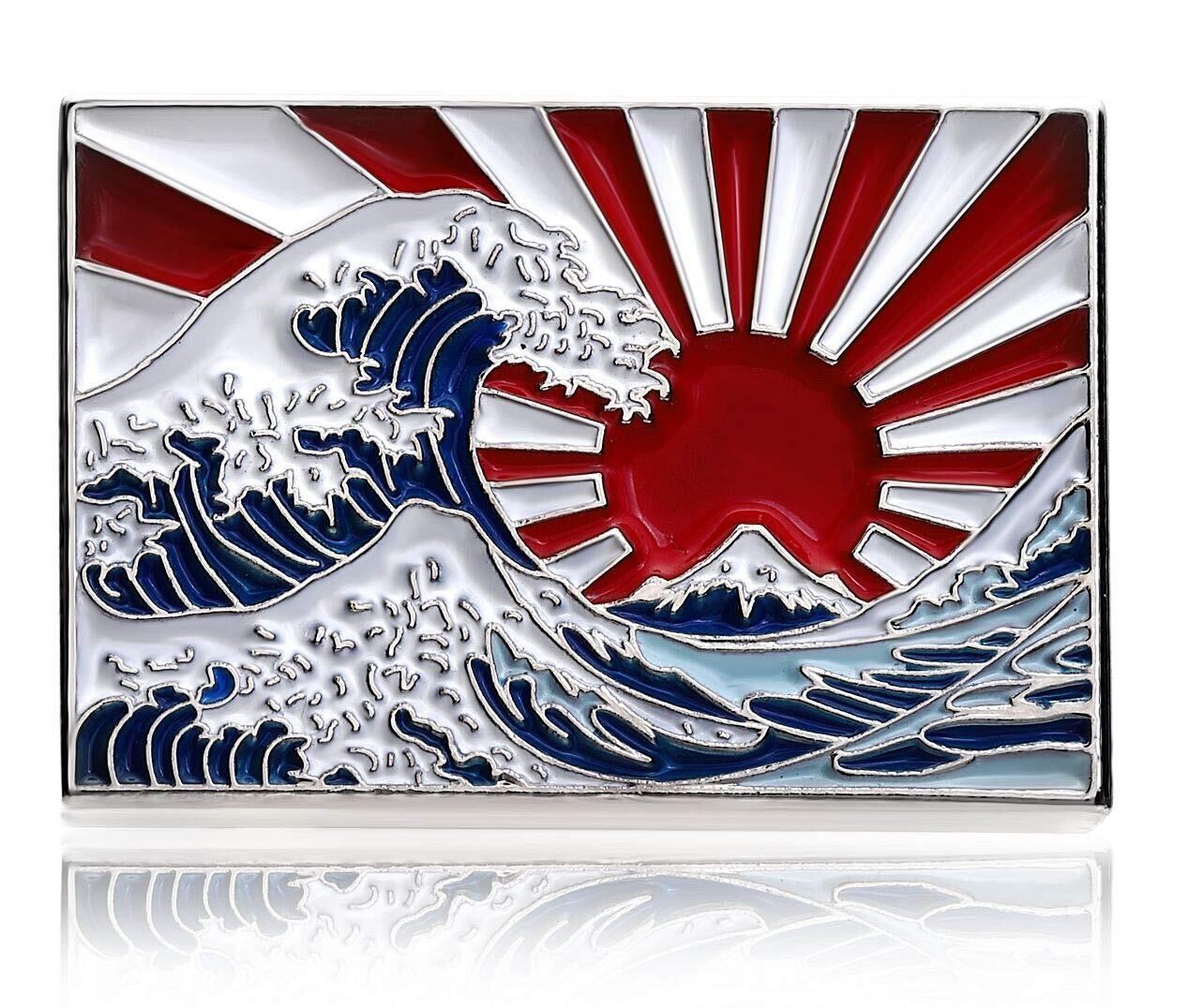 Don Flyee ピンバッジ ピンズ 葛飾北斎 富嶽三十六景 神奈川沖浪裏 旭日旗 モチーフ バタフライクラッチ 合金製 日本伝統デザイン C0047