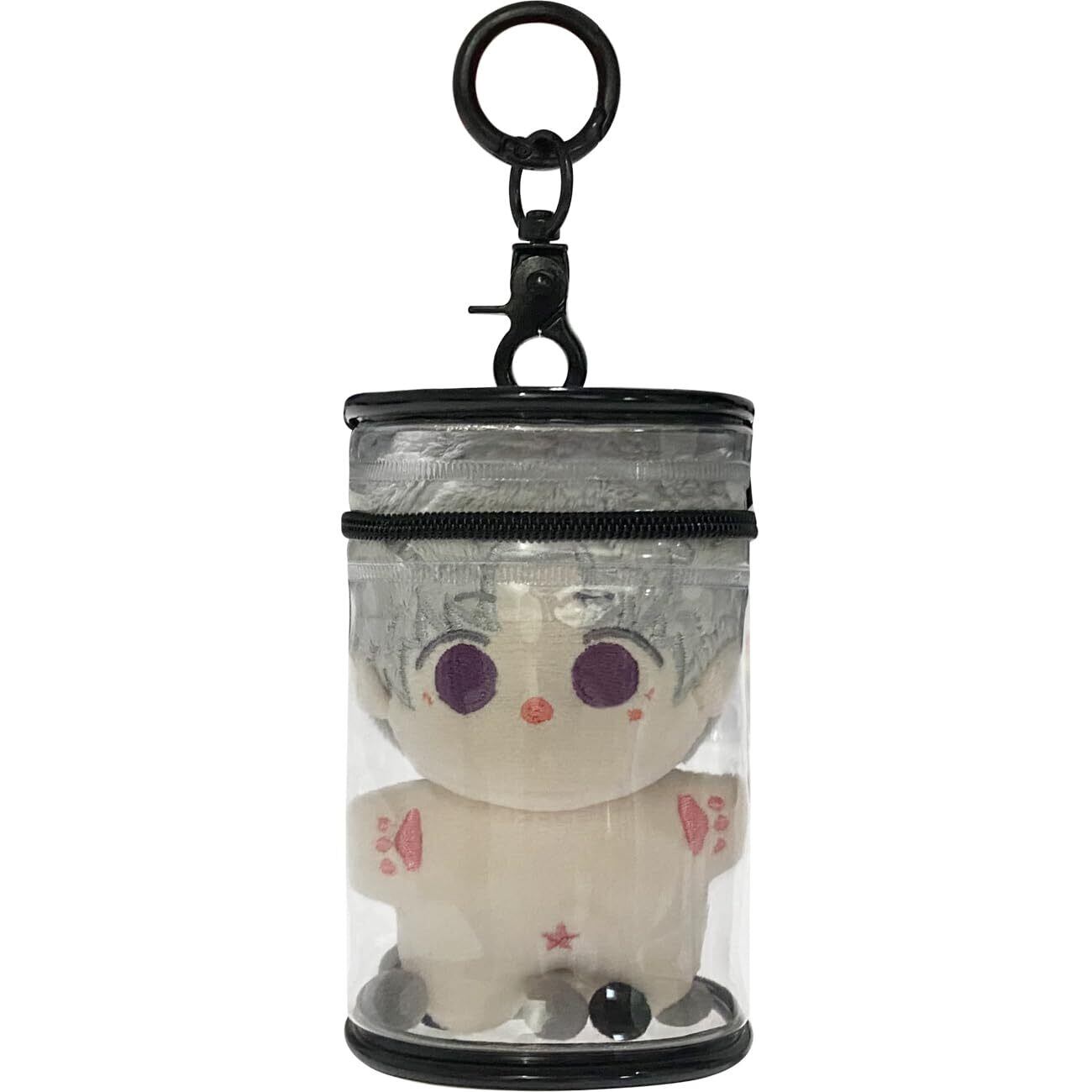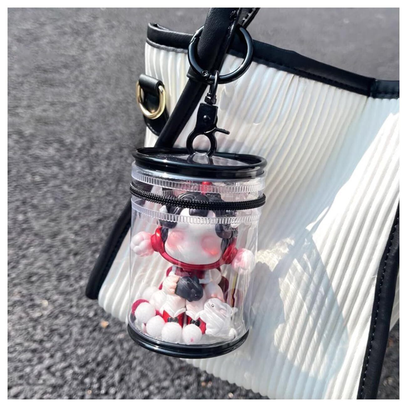 [YUYAKESHI] 痛バ ケース イベント 人形入れ ぬいぐるみ用 ぬいカップ 外出 透明 バッグ ミニポーチ 円筒 バック キーホルダー付 9.5cm高