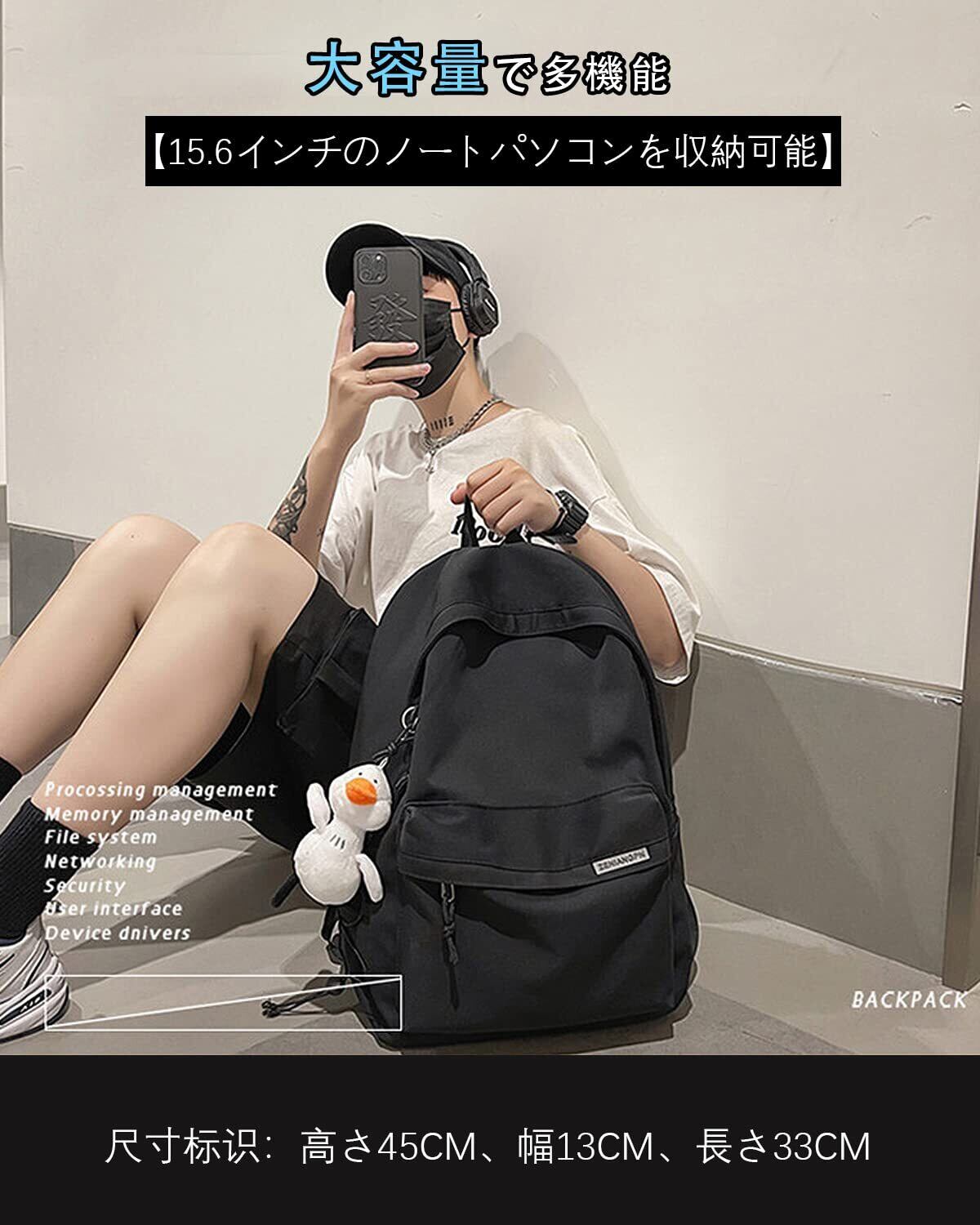 【大容量&多ポケット】独立したノートパソコン用コンパートメントは15.6インチのノートパソコンを簡単に収納できます。大容量のメインバッグには、本、昼食、軽装、学用品、旅行用品などの日常的な必需品を収納することができます。フロントファスナーポケットは鍵、ペン、鉛笔を収納できます。2つのサイドポケットは水筒や傘を入れられます。すべてのアイテムをきちんと整理して簡単にアクセスできます。