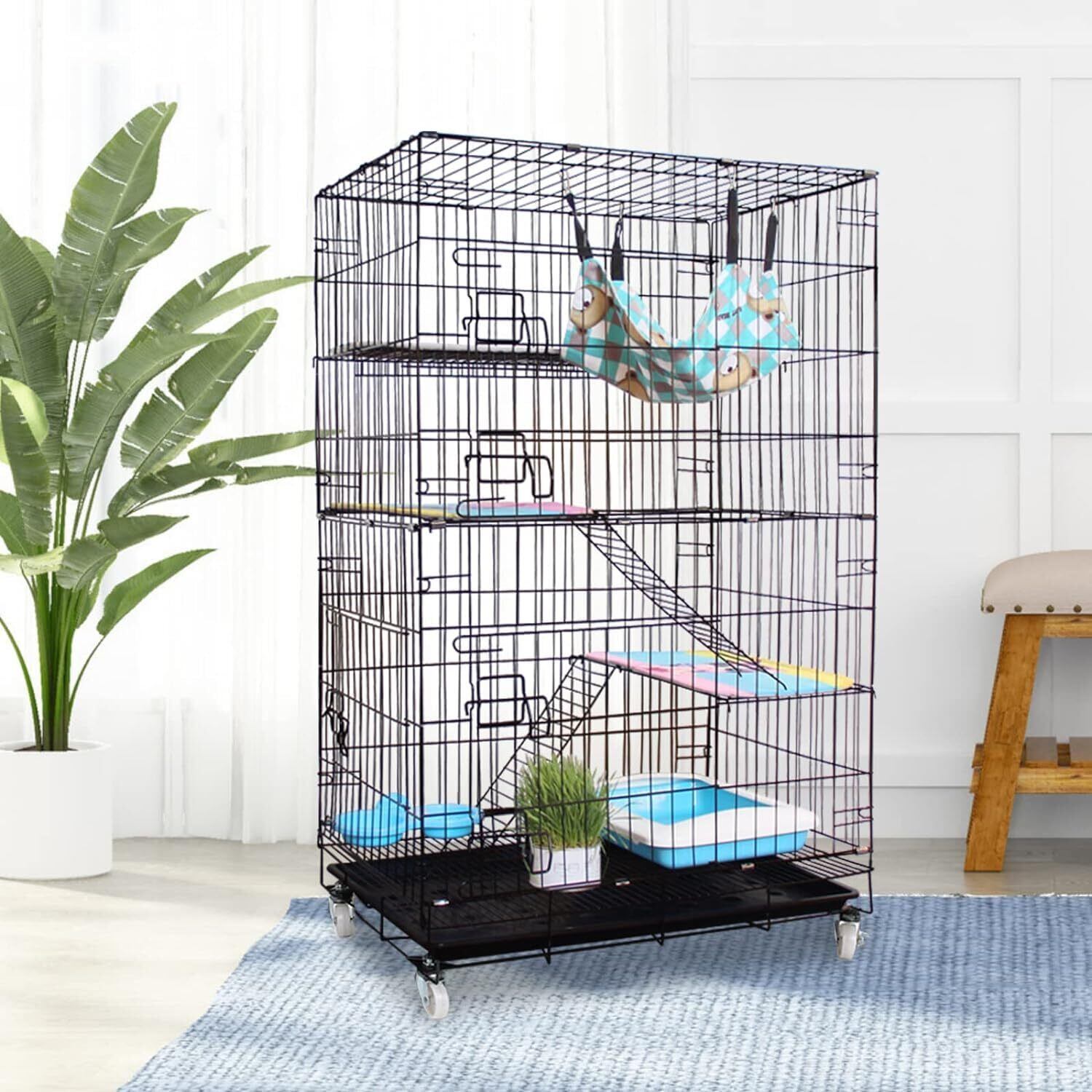 【広々としたスペース】ゲージ 猫 3段 :猫ちゃんが利用してのんびりリラックスできます。上下運動もできる高さ。猫階段 付いているので、ケージの中でも楽しく遊べる。猫のケージ,留守中やワンちゃんから目を離す時、いたずらによる怪我や事故の防止にも役立ちますし、緊急時の避難用にも重宝します。ゆらゆら揺れるハンモックが付いて、猫ちゃんにのんびりと時間を過ごしています。