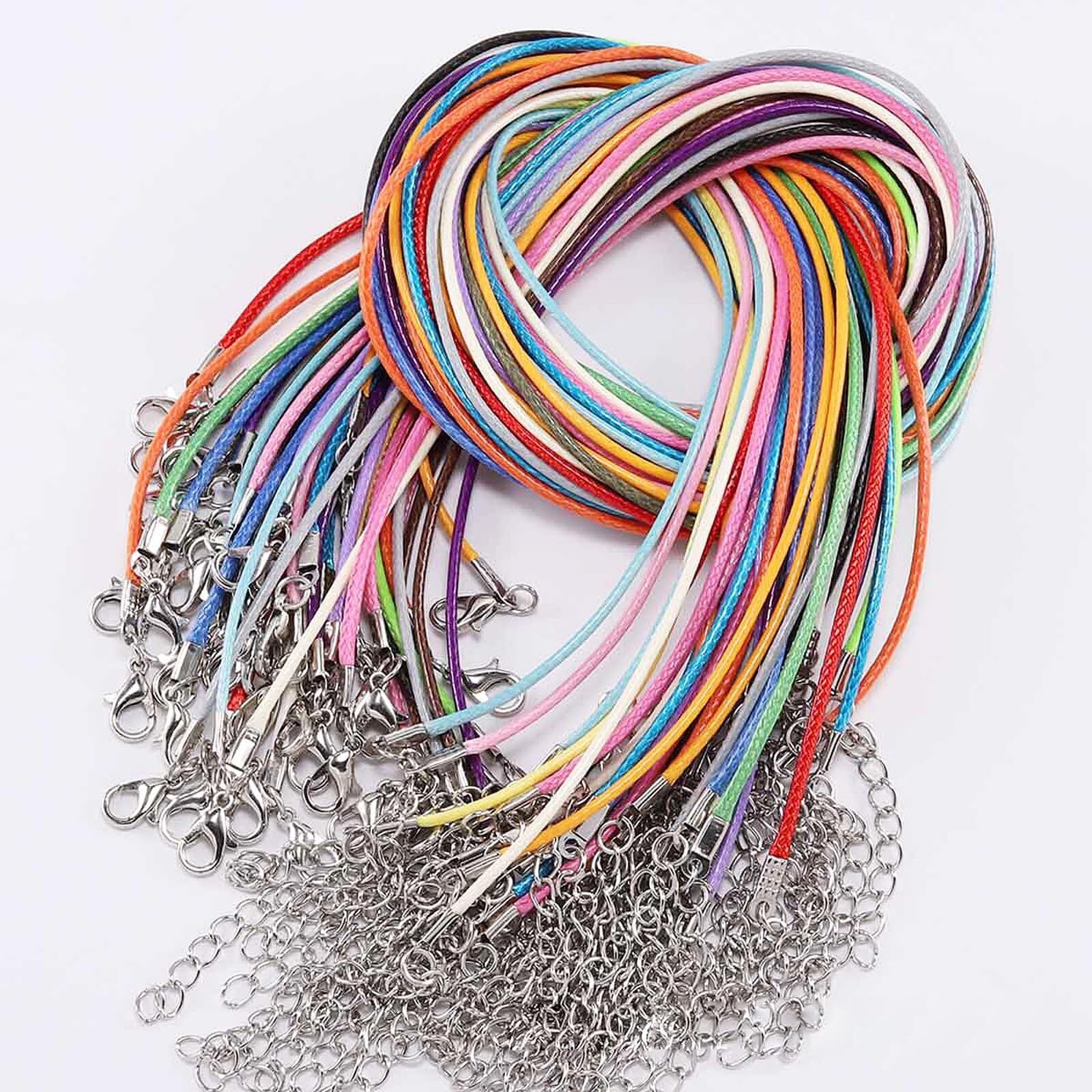 LIANHATA レザー紐 100本 45cm 1.5mm ネックレス紐 ひも ジュエリーアクセサリー ペンダント用 ワックスコード ロブスターバックル付き アクセサリーパーツ DIY ハンドメイド材料 (ミックスカラー)