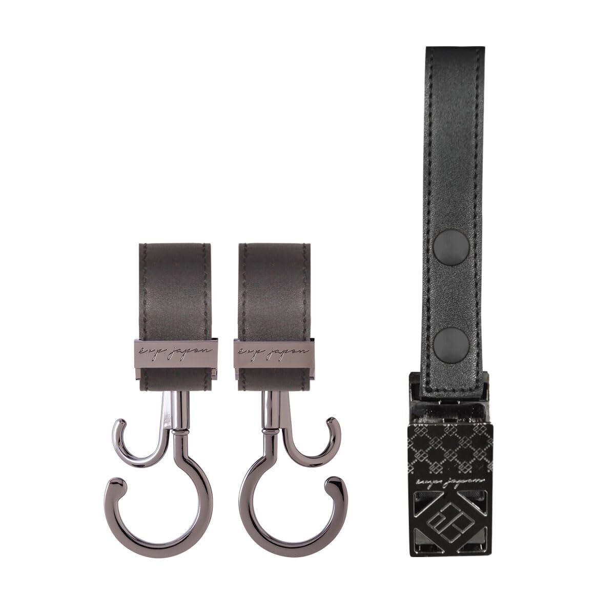 e.x.p.japon 2点セット バギーフック&シューズクリップ BK-合皮ブラック 360度回転式 ベビーカーフック b-bhsc10
