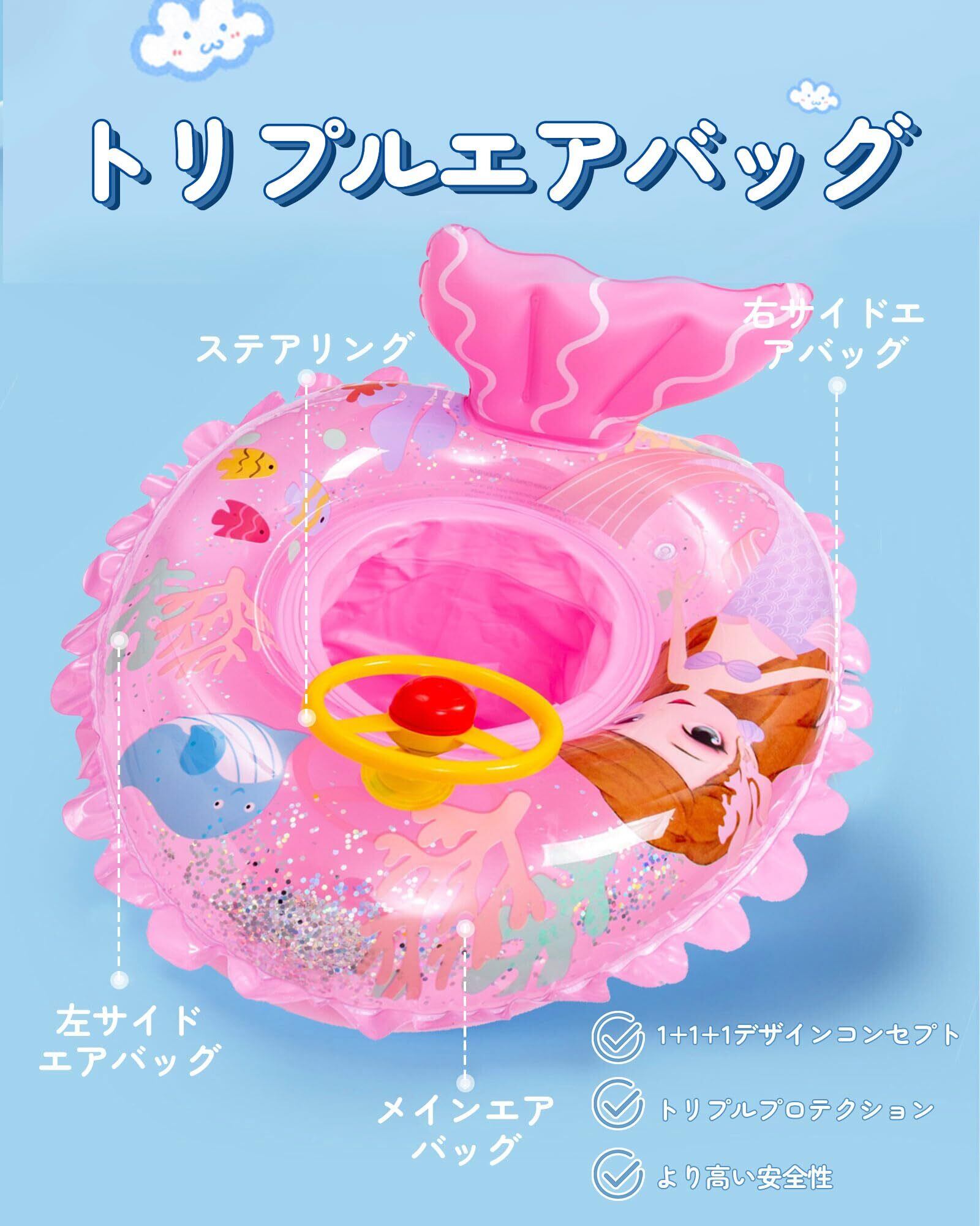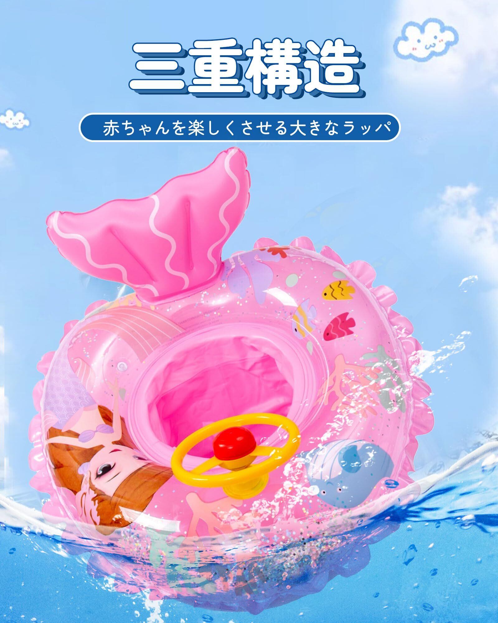 子供用 浮き輪 可愛いプリント ベビーフロート 魚の尾、ハンドル付き 夏 うきわ 水遊び 足入れ 赤ちゃん 幼児 キッズ 男の子 女の子 海水浴 水泳 夏休旅行 海 プール ビーチ 水遊び アウトドア 1~5歳適用(人魚姫)