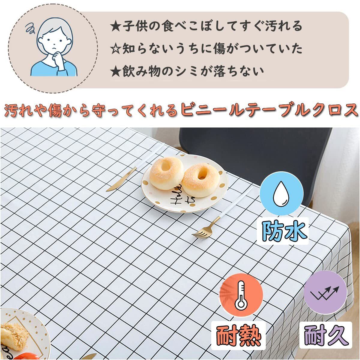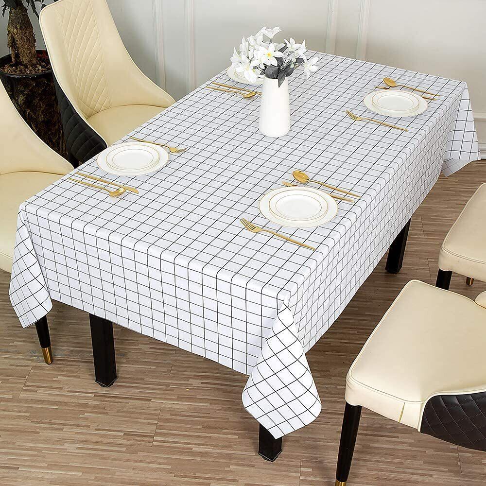 Forhomelife テーブルクロス ビニール 撥水 テーブルカバー 長方形 北欧 耐熱 すべり止め 長さ調節 撥水加工 おしゃれ PVC 厚手 140x180cm ホワイト 格子柄