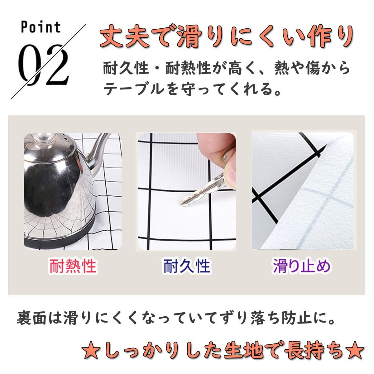 【耐久耐熱性】裏面には滑りにくくなっていてずり落ち防止になります。そして、耐久性・耐熱性が高く、熱や傷からテーブルを守ってくれる。