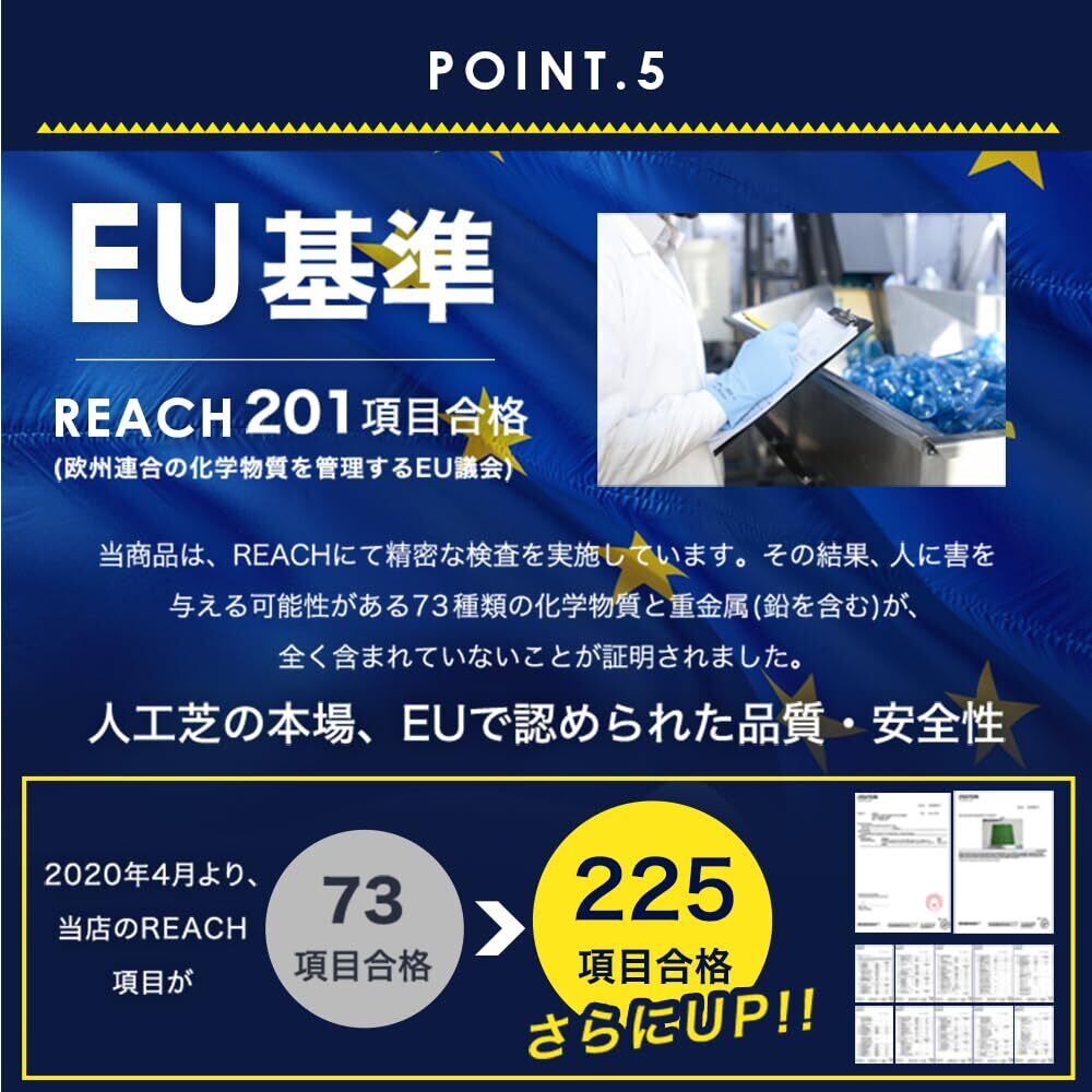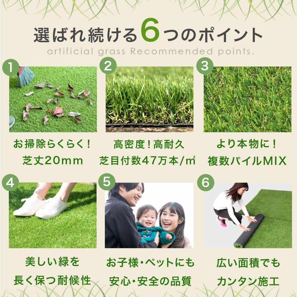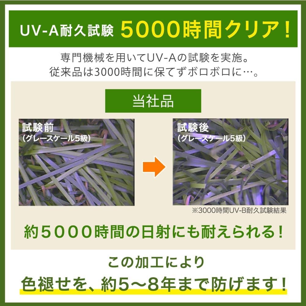 【素材】芝:ポリエチレン、ポリプロピレン 土台:ポリプロピレン、ラテックス 芝葉目付数(密度)/47万本m2