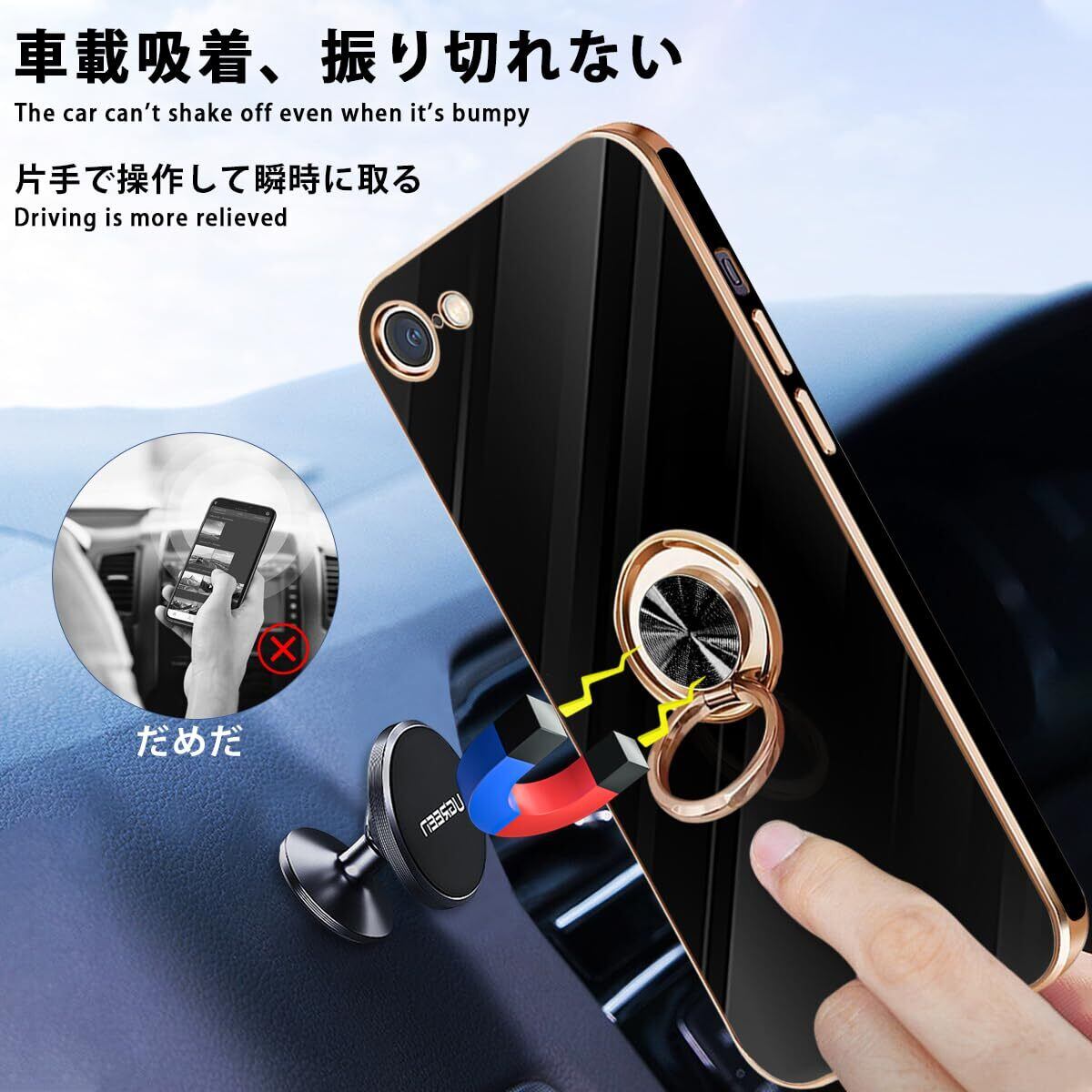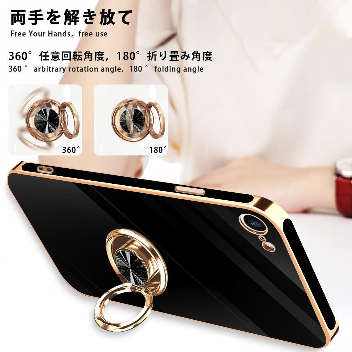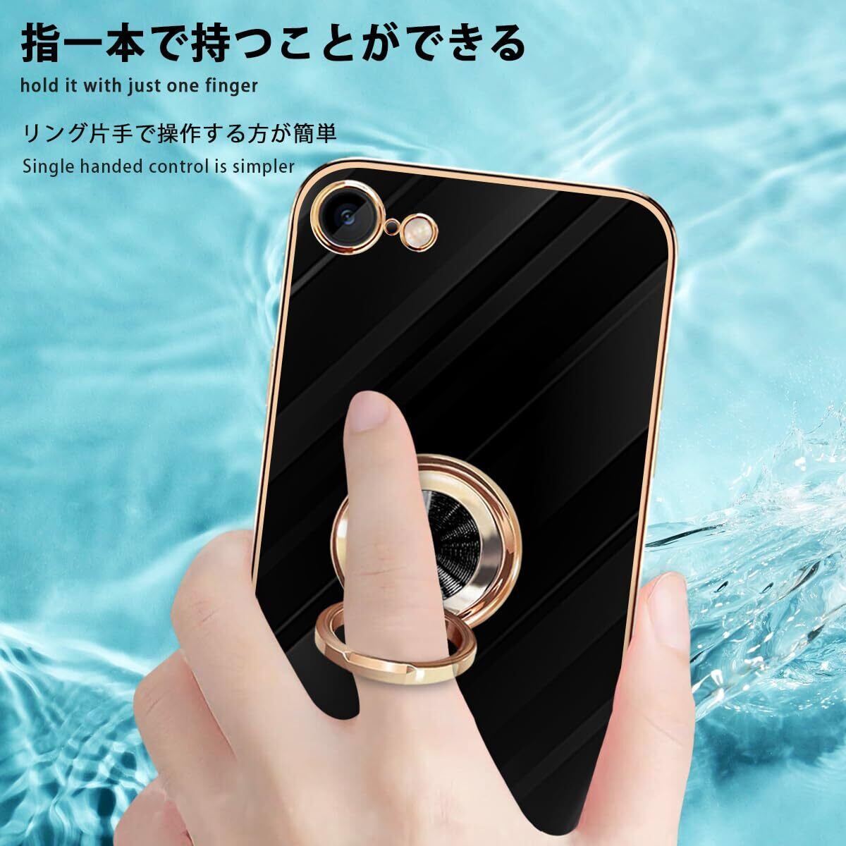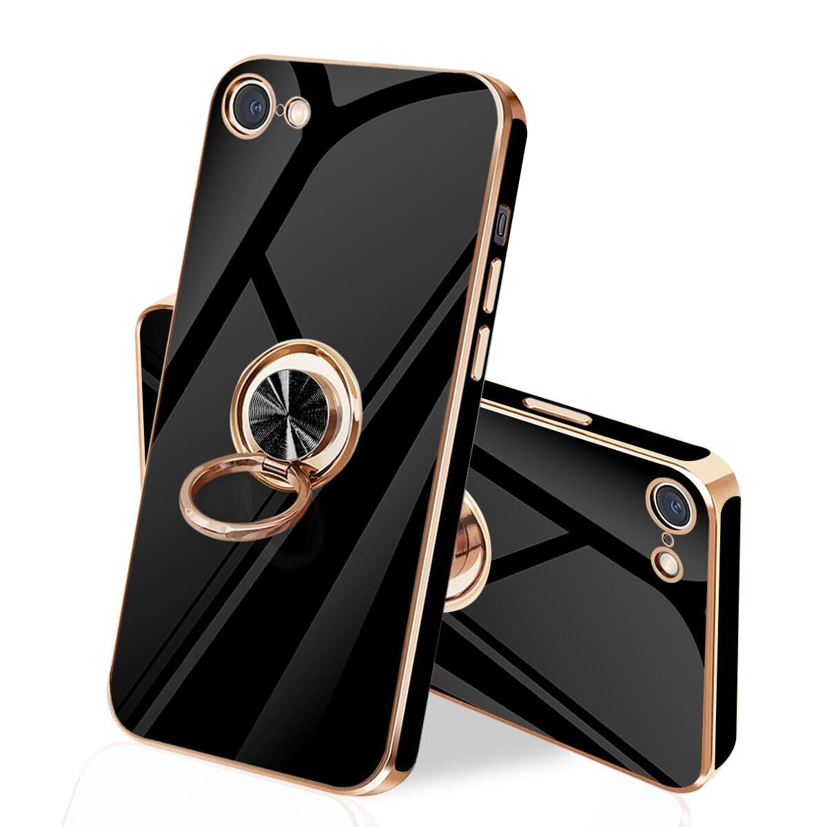 iPhone SE ケース iPhone第3世代 ケース iPhone第2世代 ケース iPhone8/7 ケース リング 耐衝撃 360°回転 スタンド機能 車載ホルダー対応 アイフォン SE3/SE2 ケース 一体型 携帯ケース 保護カバー レンズ保護 ストラップホール付き 4.7インチ (ブラック)