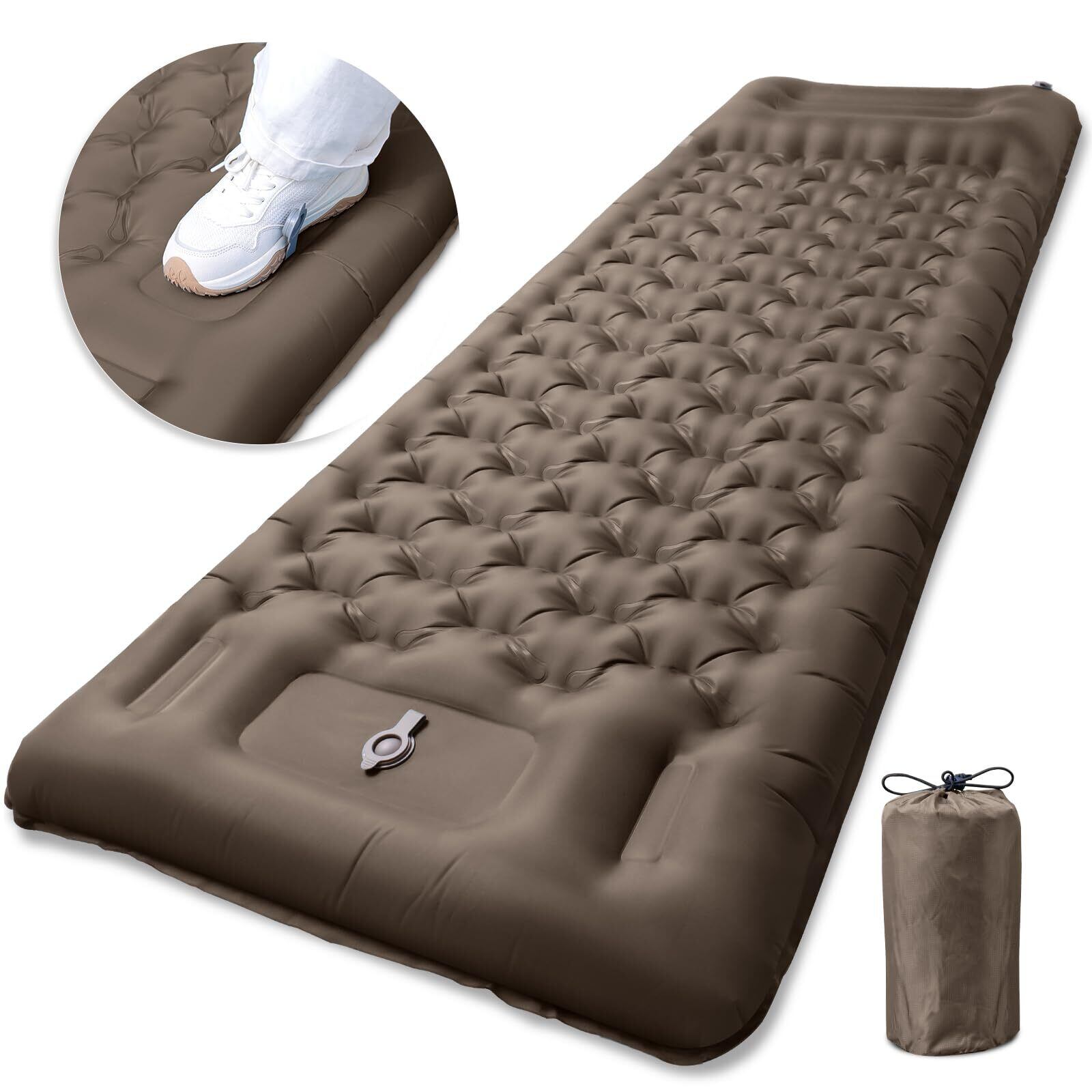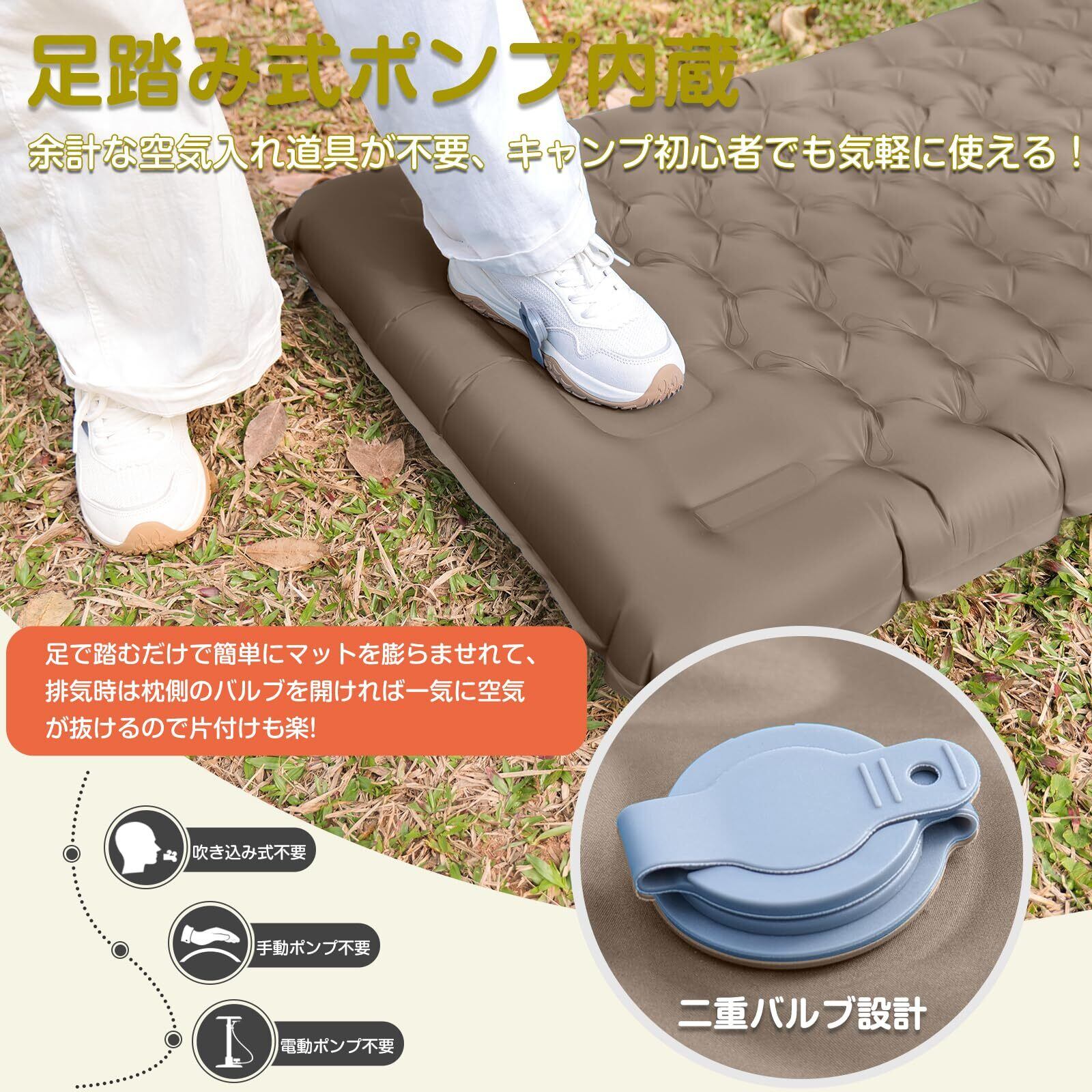 【 余計道具不要、空気入れ&排気簡単 】●FIRPOWキャンプマットはスピードアップの足踏み式ポンプ内蔵、足で踏むだけでわずか約1-3分間に空気入れ完了です。排気時は枕側のバルブを開けるだけで素早く空気を排出できるので、片付けも楽です。●また二重バルブを採用、密封性の高いため、空気漏れの不安もありません。余計な空気入れ道具が不要、キャンプ初心者でも気軽に使えます。