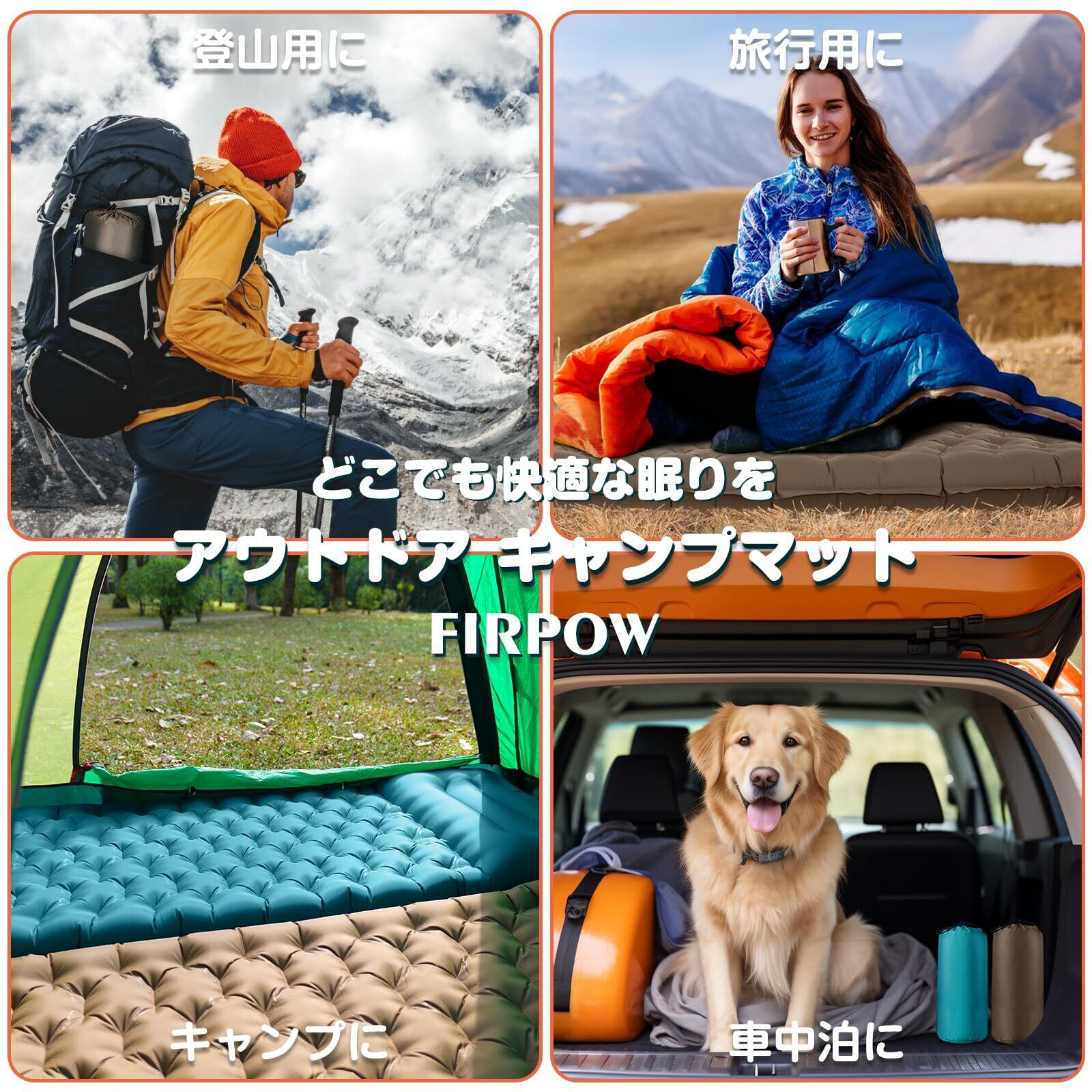 【 高品質材採用、耐久性抜群 】●FIRPOWエアーマットは50Dのナイロンと多層構造のTPU素材を採用、超軽量なのに、最大300kg耐重量、高弾力と耐消耗性が強く、耐久性に優れているなどの特性を持っているため、アウトドアに最もおすすめのキャンプ用品です。●水や汚れにも強い、汚れた場合は濡れタオルで簡単に拭き取ることができ、補修テープも付いており、万が一の場合でも補修できます。