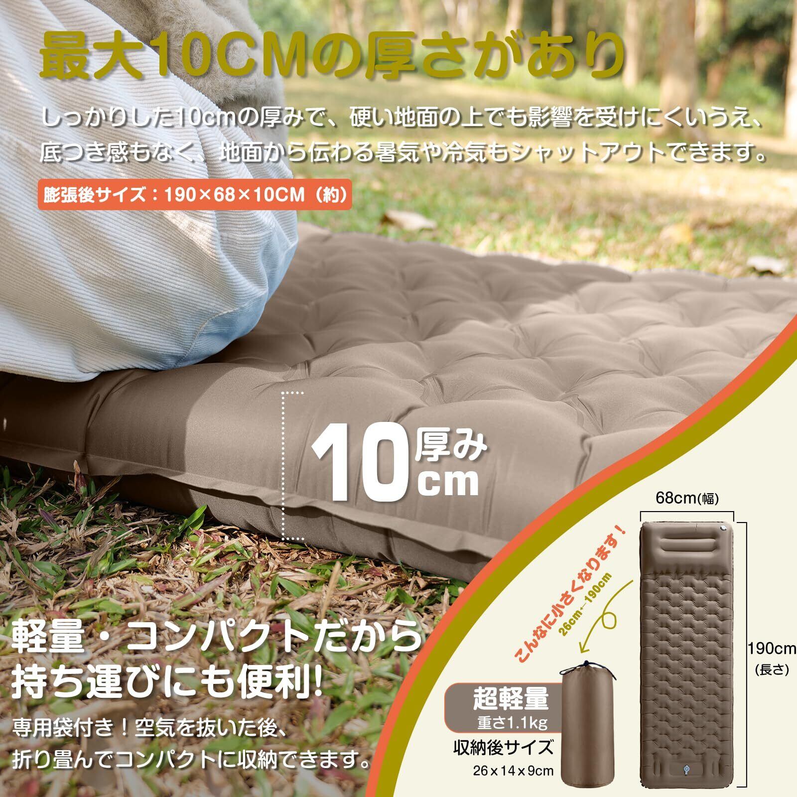 FIRPOW エアーマット キャンプ マット 【10cm厚さ・寝心地良い】枕付き エアマット コンパクト 軽量 防水防潮 車中泊 マット キャンプマット アウトドアマット キャンプ用 取扱説明書・収納袋付 折り畳み式 持ち運び便利