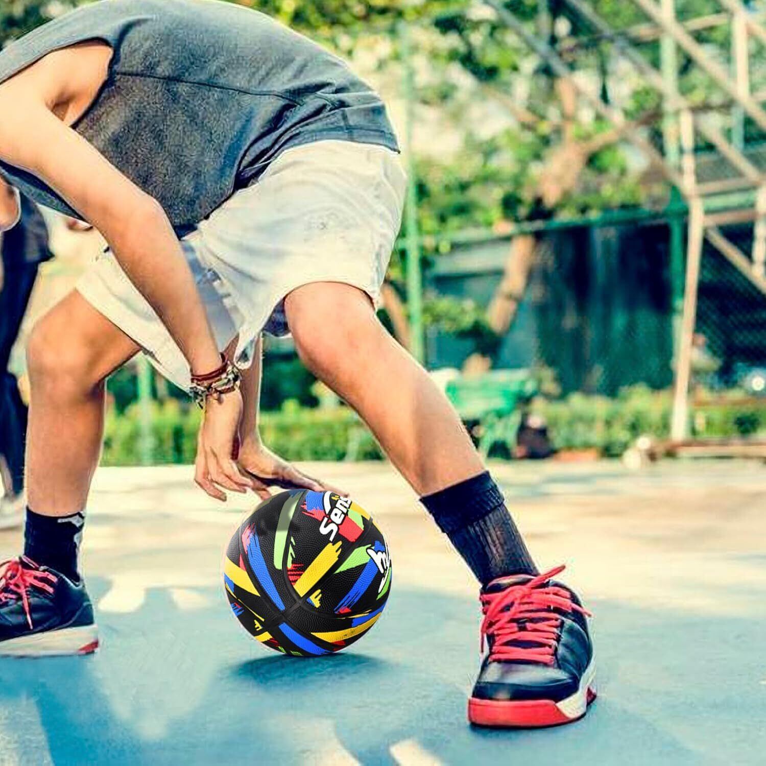 Senston バスケットボール 7号 屋内/屋外用、大人/青少年競技トレーニング用、ポンプ付き