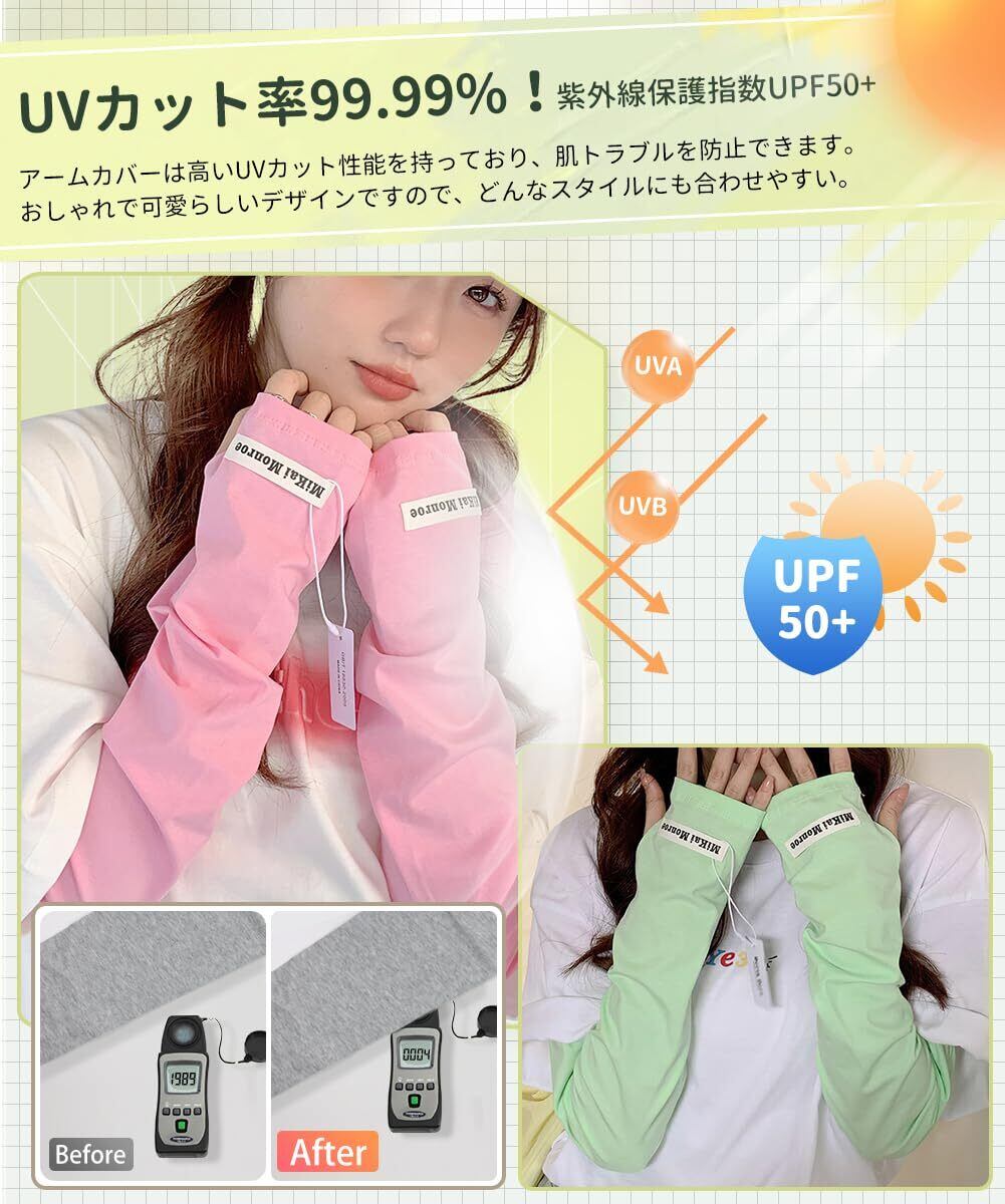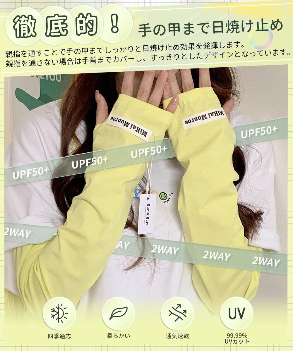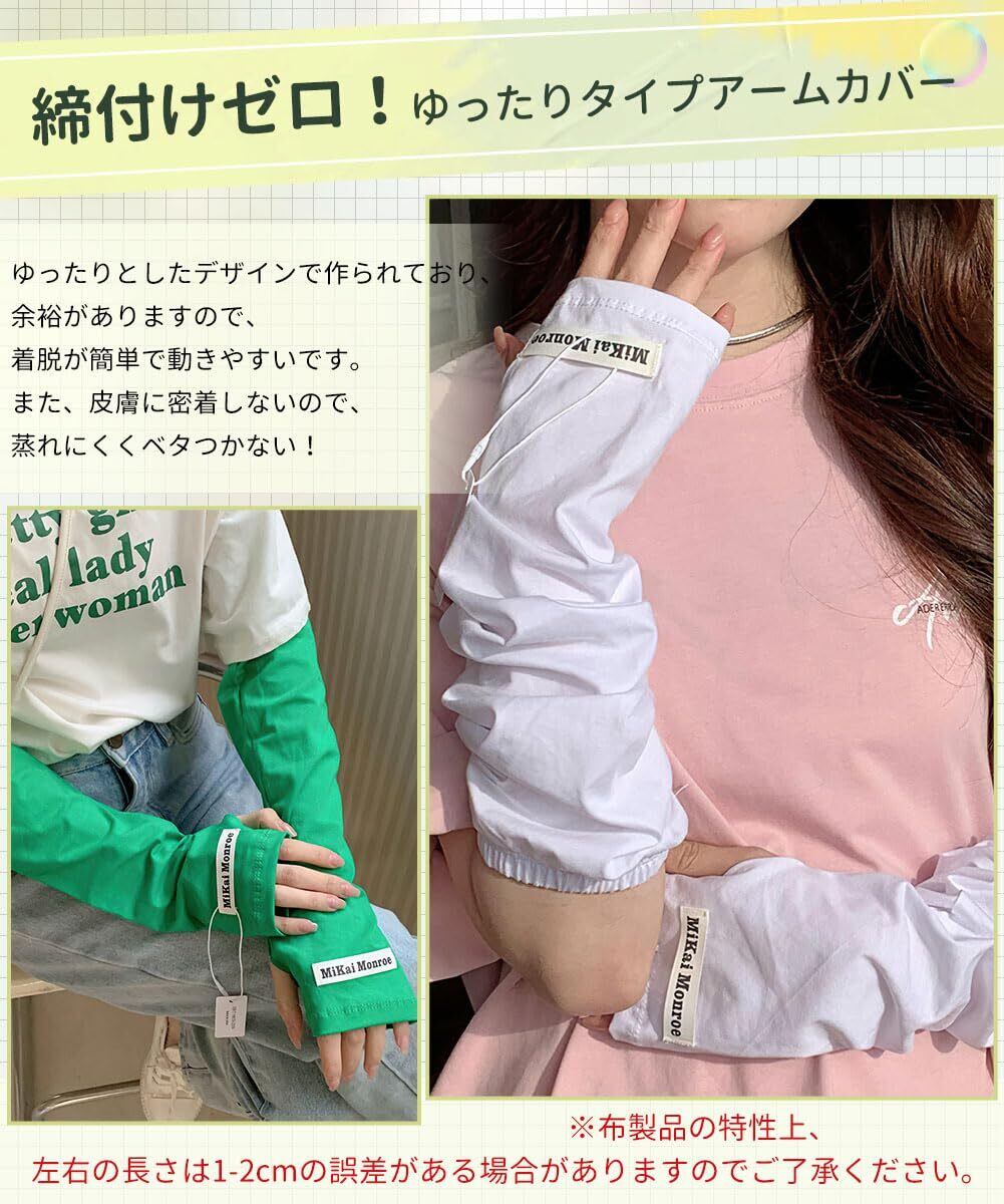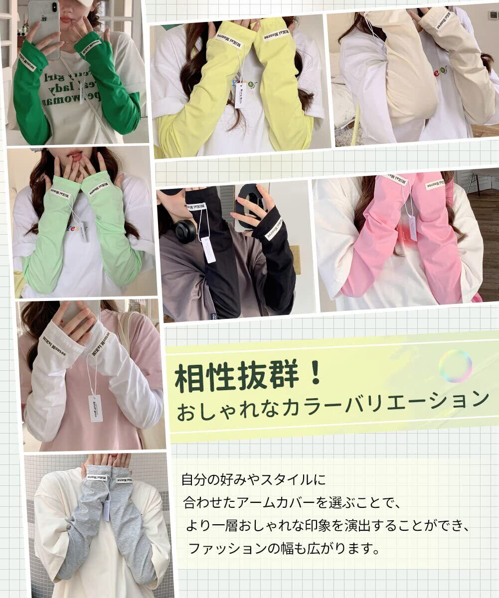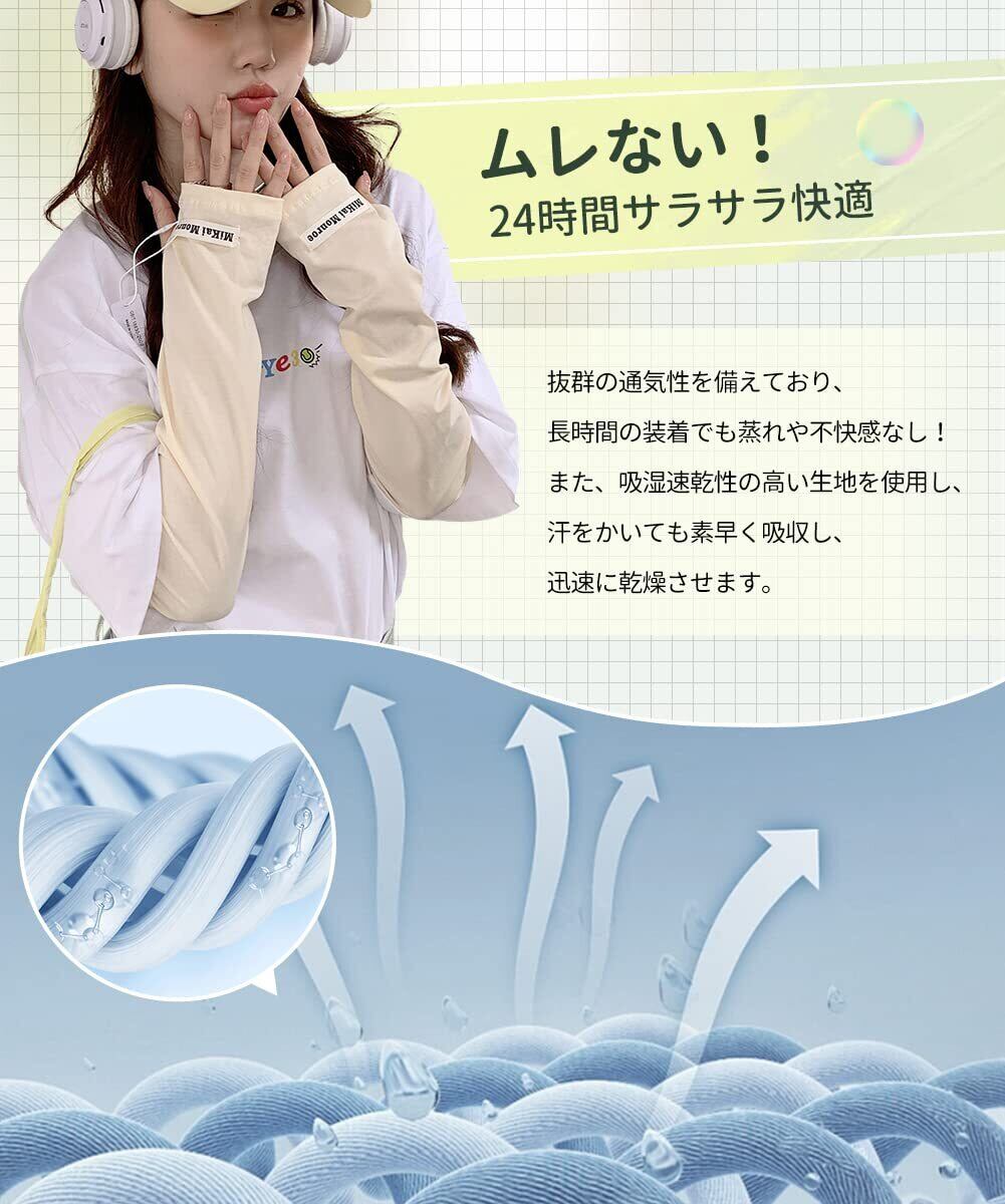 [SLEEPSINERO] アームカバー レディース かわいい UV 夏 アームスリーブ 【手の甲まで日焼け止め・紫外線対策・ひんやり冷感】 ゆったり UPF50+ UVカットアームカバー 可愛い ロング丈 指穴あり ズレ防止 UV腕カバー 四季