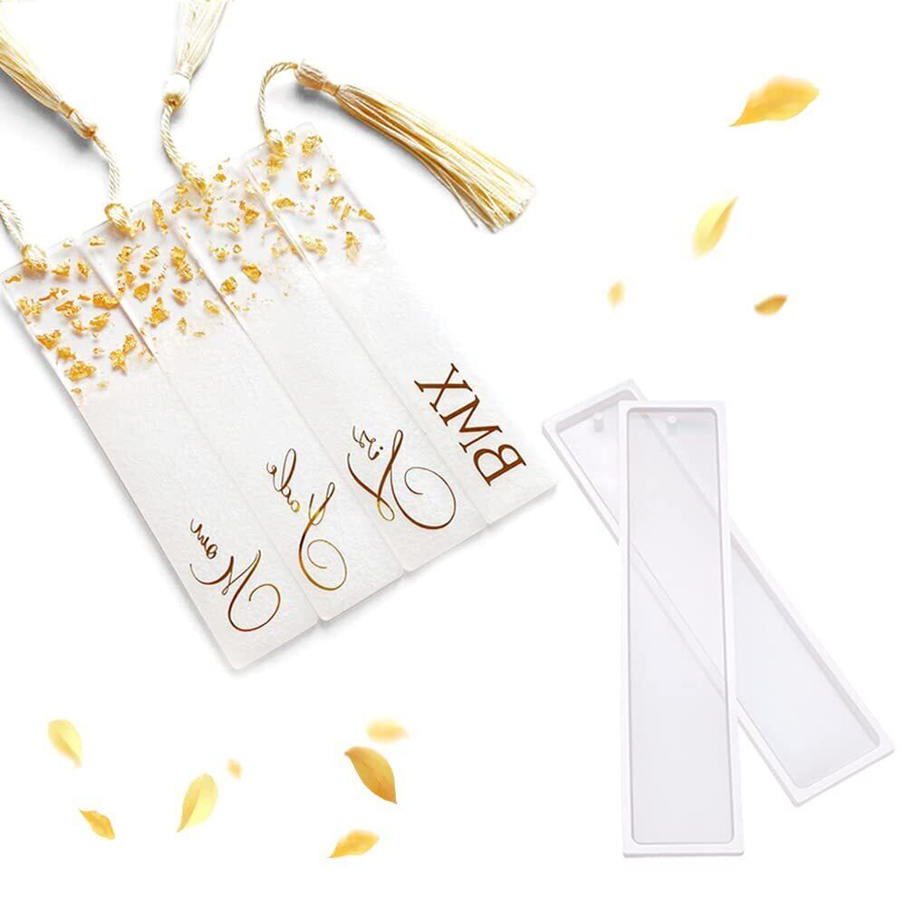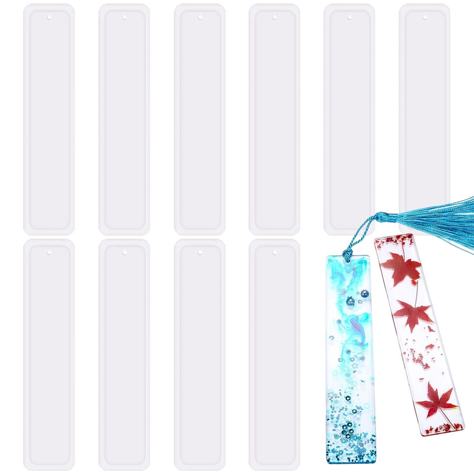 サムコス シリコンモールド ブックマーク 10個セット 通し穴 長方形 しおり型 UVレジン エポキシ樹脂 フトモールド ソフトモールド 手作り DIY 樹脂 粘土型 ブックマーカー 樹脂工芸品 抜き型 (K)