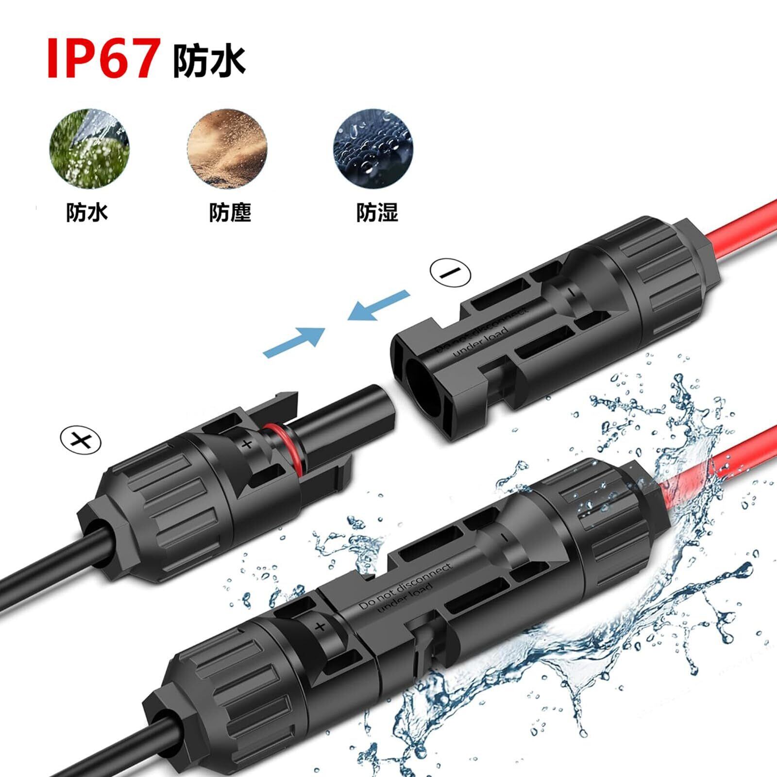 【仕様】電圧:300V;端子タイプ:MC4コネクタ;温度範囲:-40℃ ~ +80℃、防水レベルはIP67に達します。水や粉塵などがソーラー充電ケーブル内部に侵入しないことを確保できます