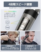 【LCDディスプレイ&USB充電】バリカンにはLED液晶ディスプレイが搭載されており、ひと目で充電の残量、速度レベルをでき、残量を気にしながらカットする必要がありません。約1時間の急速充電で約180分使用できる大容量バッテリー内蔵、忙しい人にもぴったり。USB充電式でコードレスで使いやすく、コンセント不要でどんな場所でも楽々ヘアカット!子供・家庭・業務・出張用などの場合に適用します。