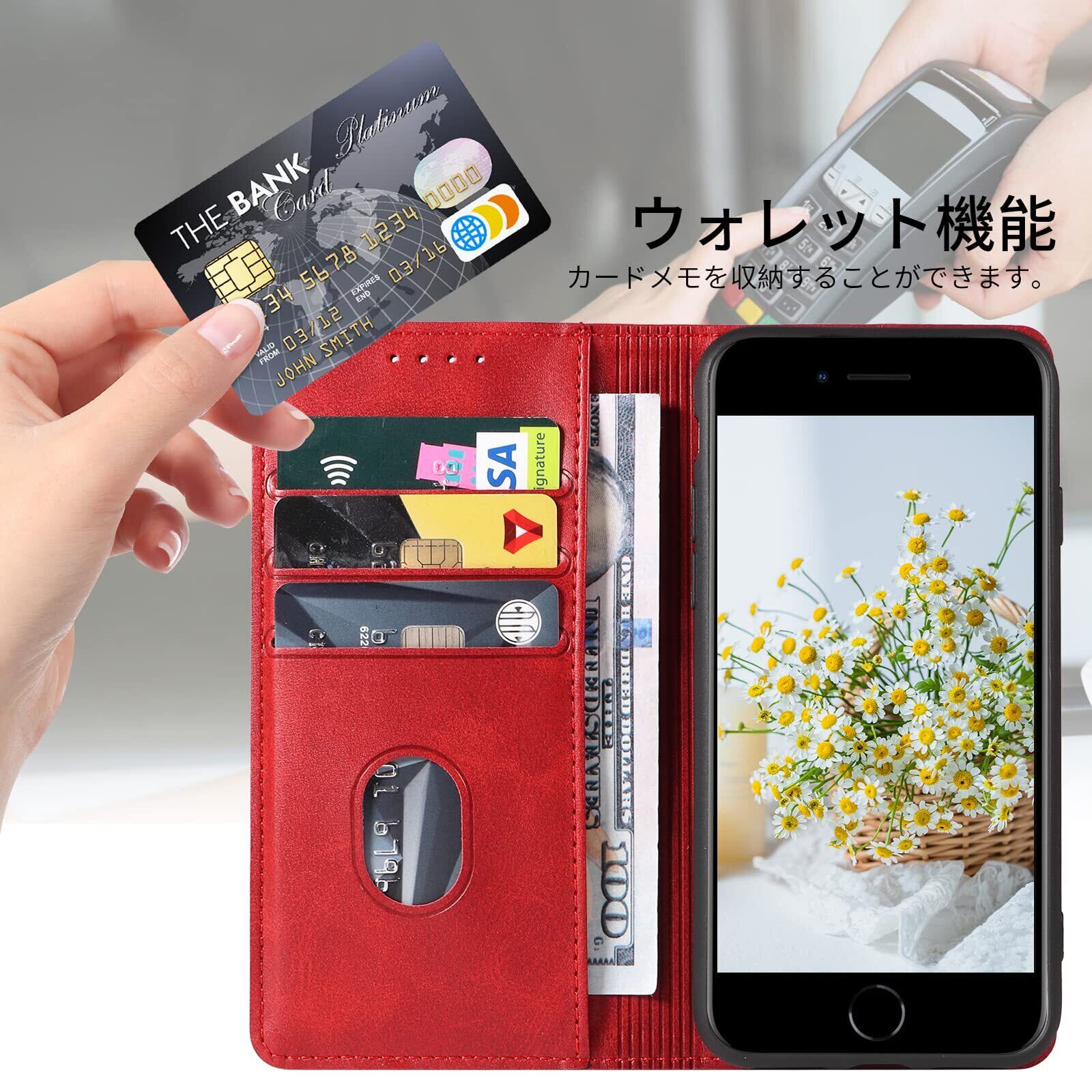 iPhone SE2 ケース 第2世代 第3世代 iphone8/7 ケース 手帳型 スマホケース 携帯カバー PUレザー カード収納ケース マグネット式 スタンド機能アイフォンse 4.7インチ対応 360度保護 PinLiSheng (ダークレッド, iPhone SE2 iPhone SE3 iPhone8 iPhone7)
