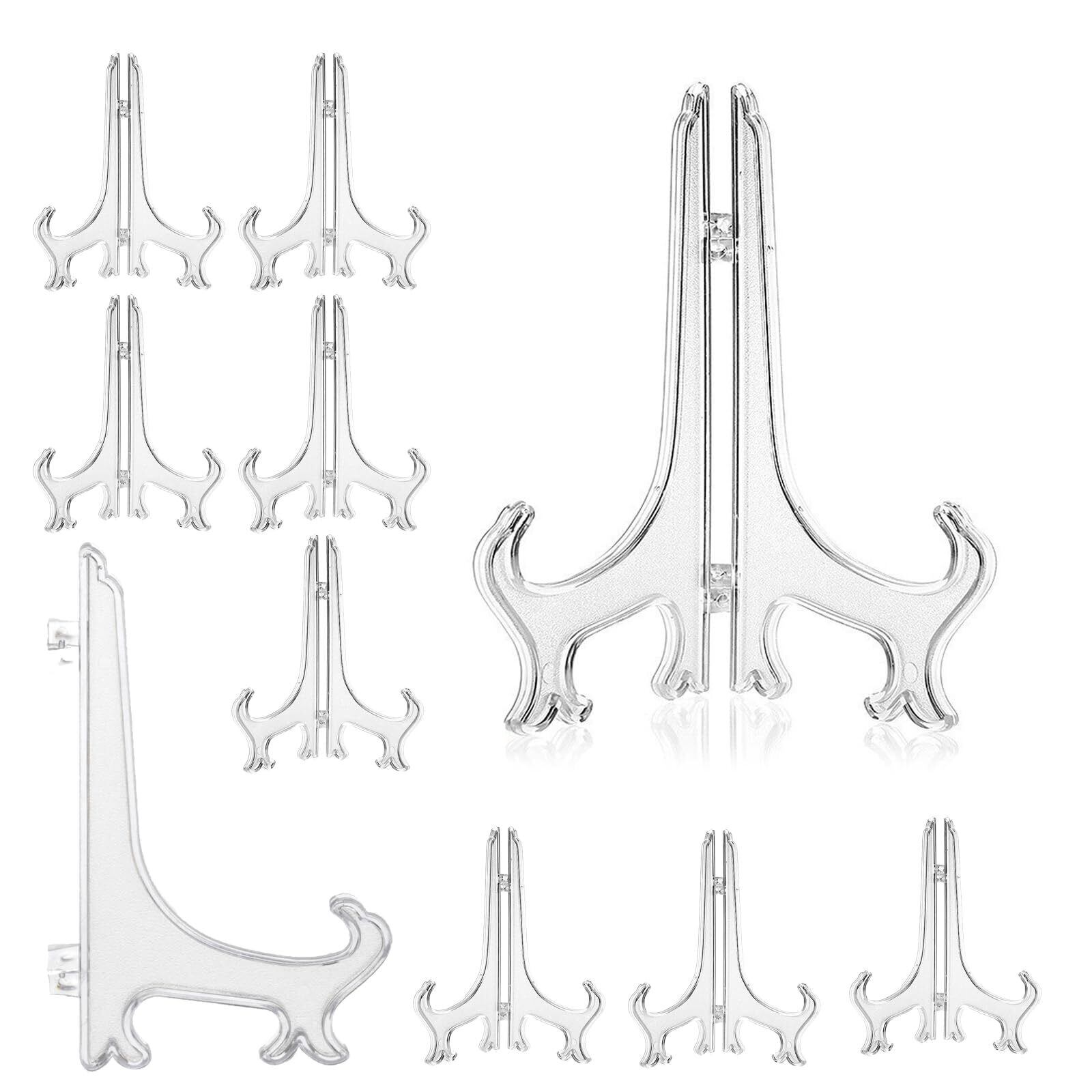 Joebo 皿立て ディスプレイ 10個セット プラスチックプレートスタンド ィスプレイ アクリル 小物 ディスプレイスタンド 写真立て 本立て 皿立 記念硬貨 メダル 缶バッジ などの展示 整理などに (M号(10個セット) 透明)