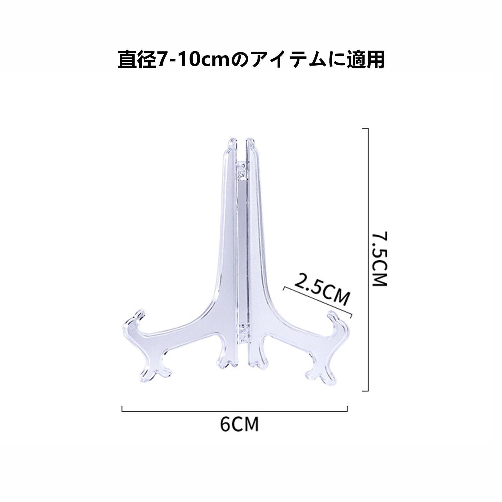 【商品仕様】アクリル トレイ スタンド。スタンド:10個セット、高さ:7.5cm、スタンドの開き幅:6cm、適用直径:7-10cm(この値は参照用であり、実際の状況は展示品の重量とサイズによって異なります。)