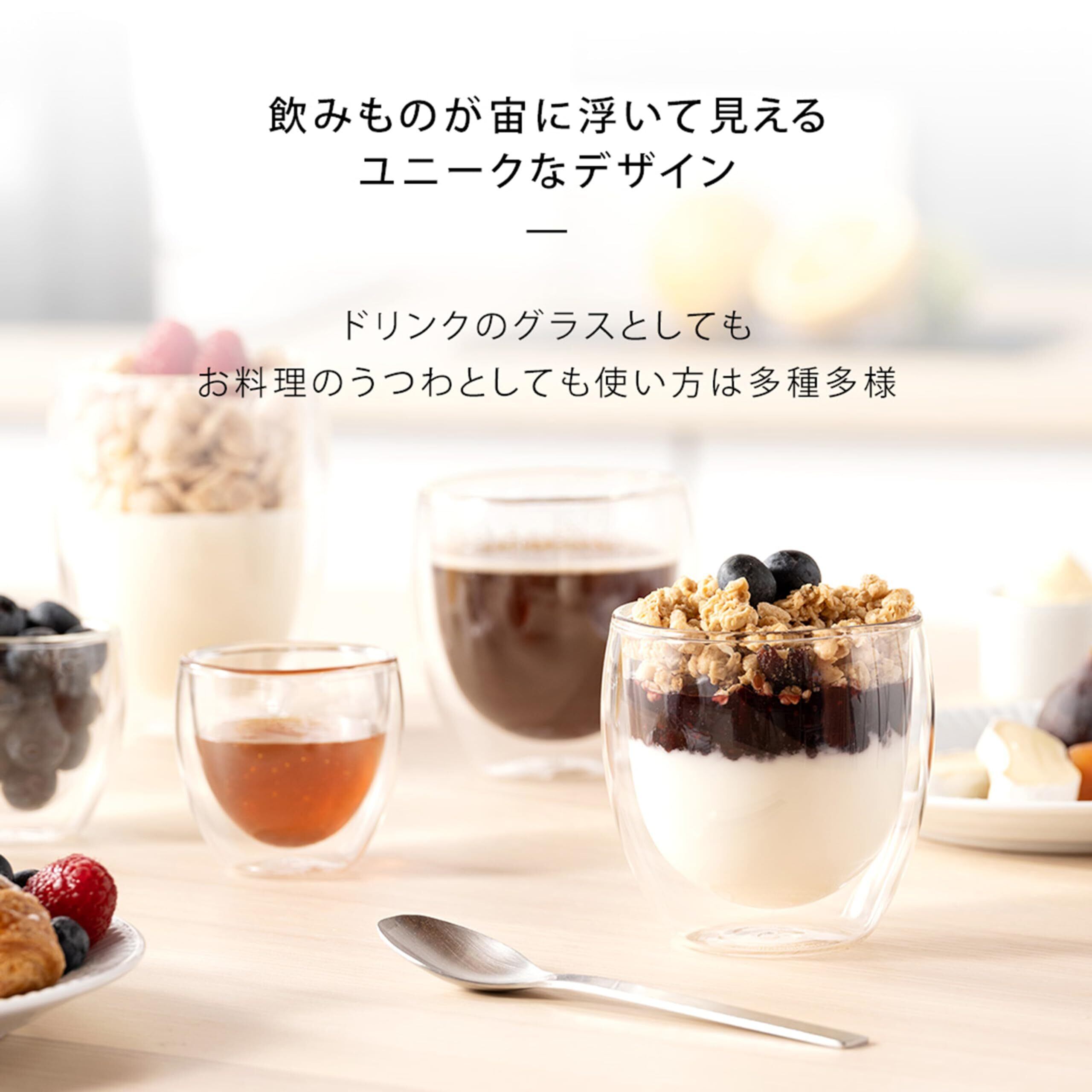 熟練された職人による吹きガラス製法で、ひとつずつ作られたボダムダブルウォールグラスは、耐熱ガラスの二重構造で、温かい飲みものは温かく、冷たい飲みものは冷たいまま、飲みもののおいしさを持続させる、保温性、保冷性に優れたグラスです。