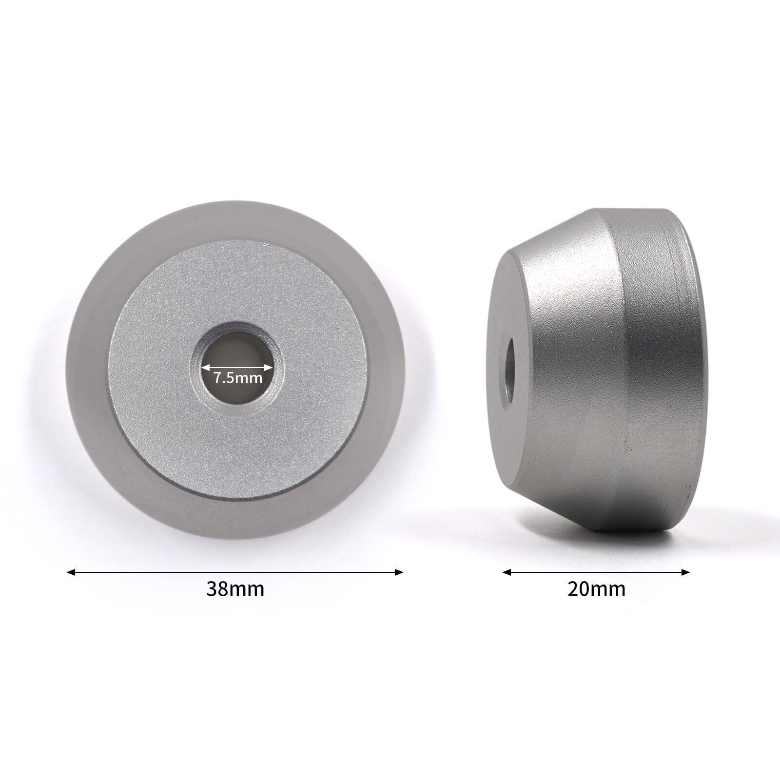 パッケージ内容:45回転 ソリッドアルミ製アダプター1個、重量51g、20mm(H)× 38mm(D)、中心穴7.5mm