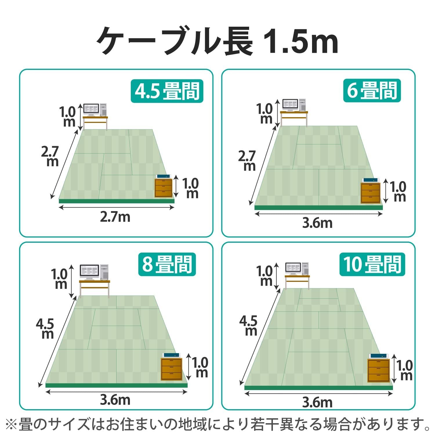 壁面のコンセントに接続してもゆとりのあるケーブル長1.5mです。