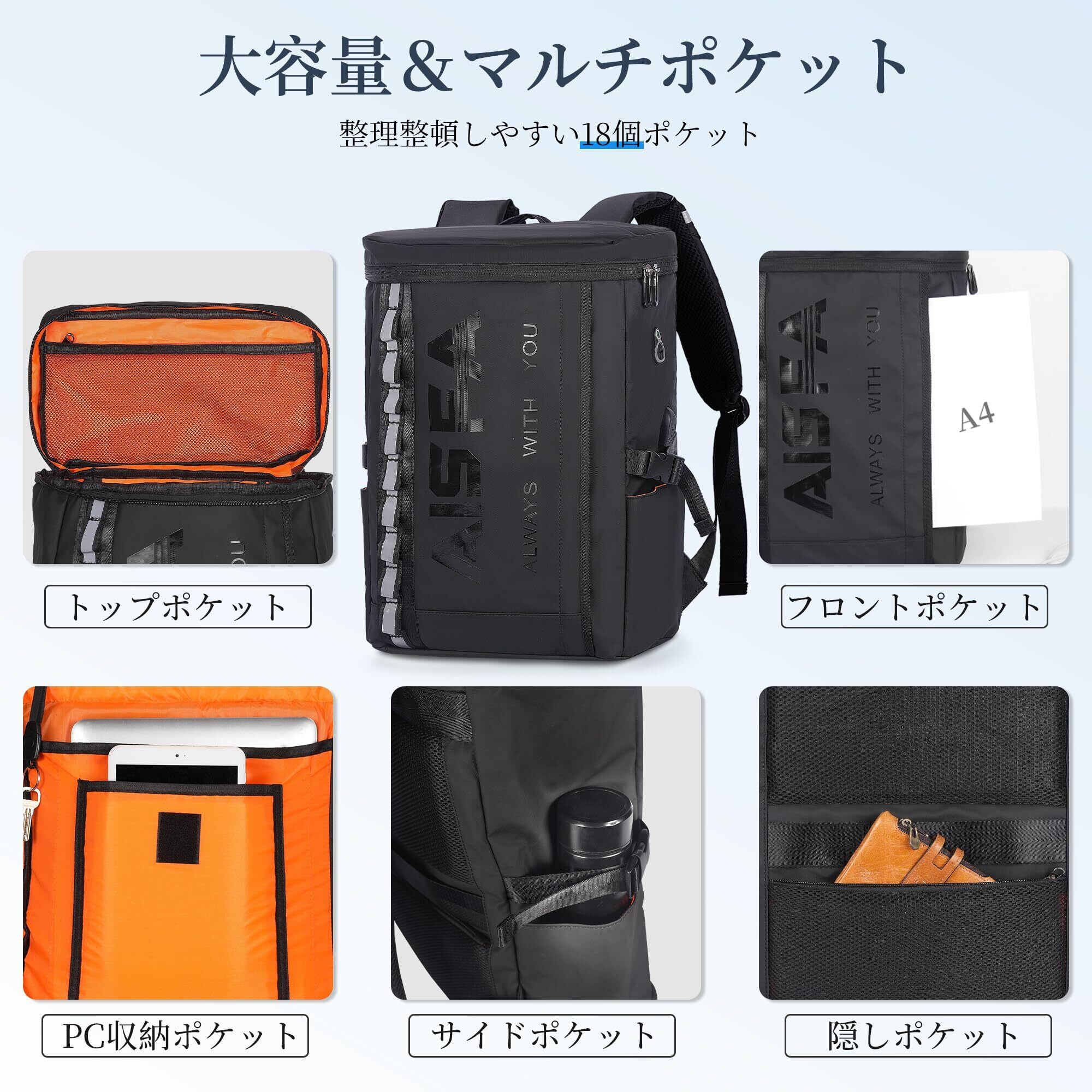 [AISFA] リュック メンズ リュックサック スクエア バックパック 防水17インチ PC ビジネス ラップトップバック USB充電ポート付き 30L アウトドア旅行防災 通勤 靴/弁当収納