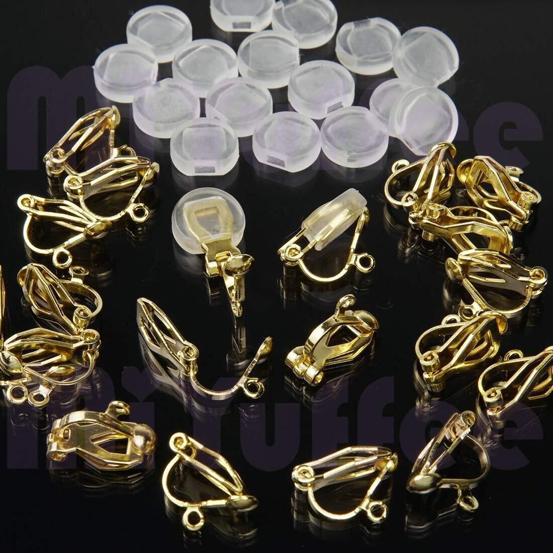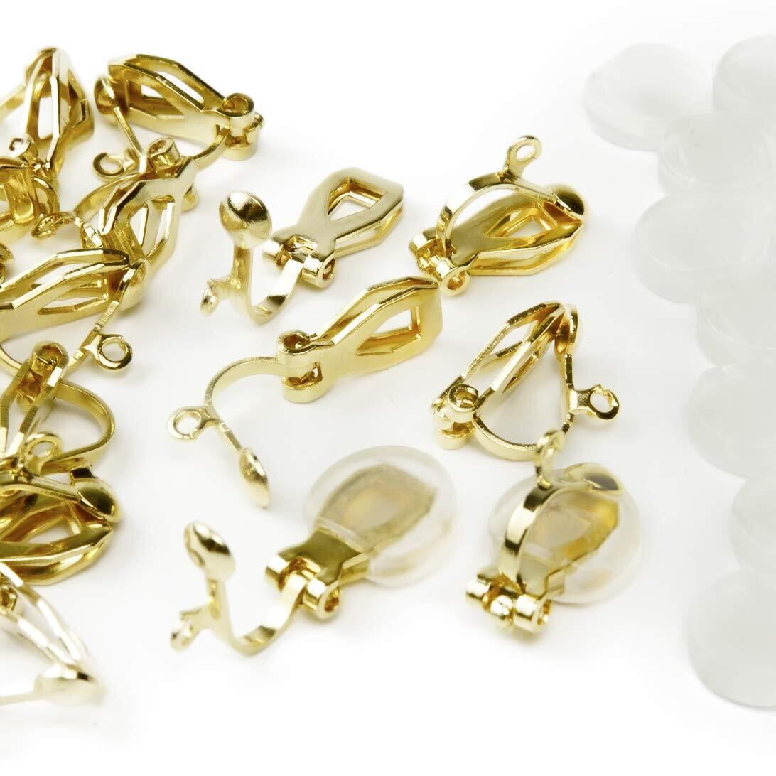 イヤリング パーツ クリップ式 ゴールド シルバー 2色 10ペア20個 シリコン カバー 付き アクセサリーパーツ ハンドメイド 手芸 金具 素材 (ゴールド)